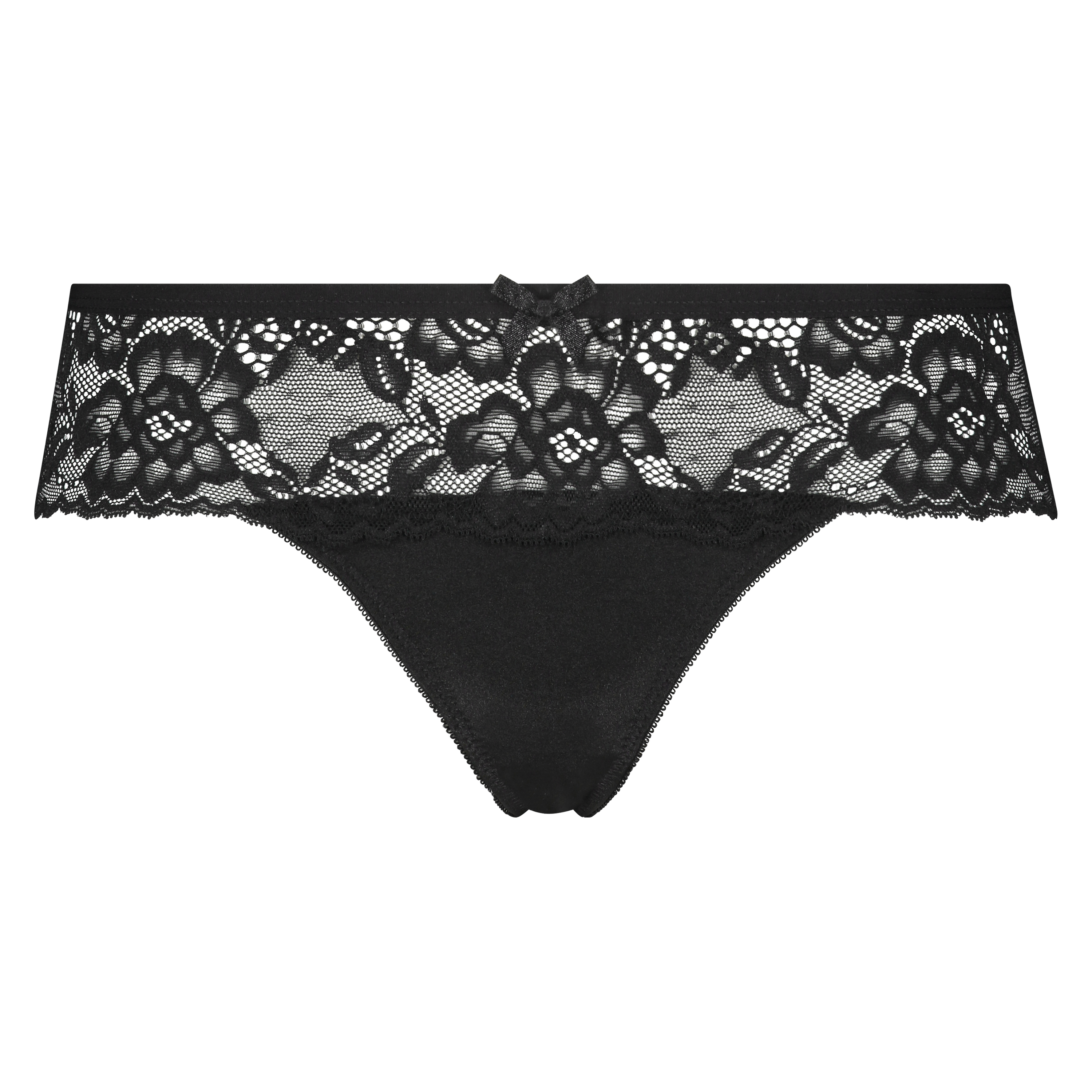 Denne bokserthongen er laget av blonder og mikrofiberstoff. Den lille sløyfen foran er en pen avsluttende detalj.