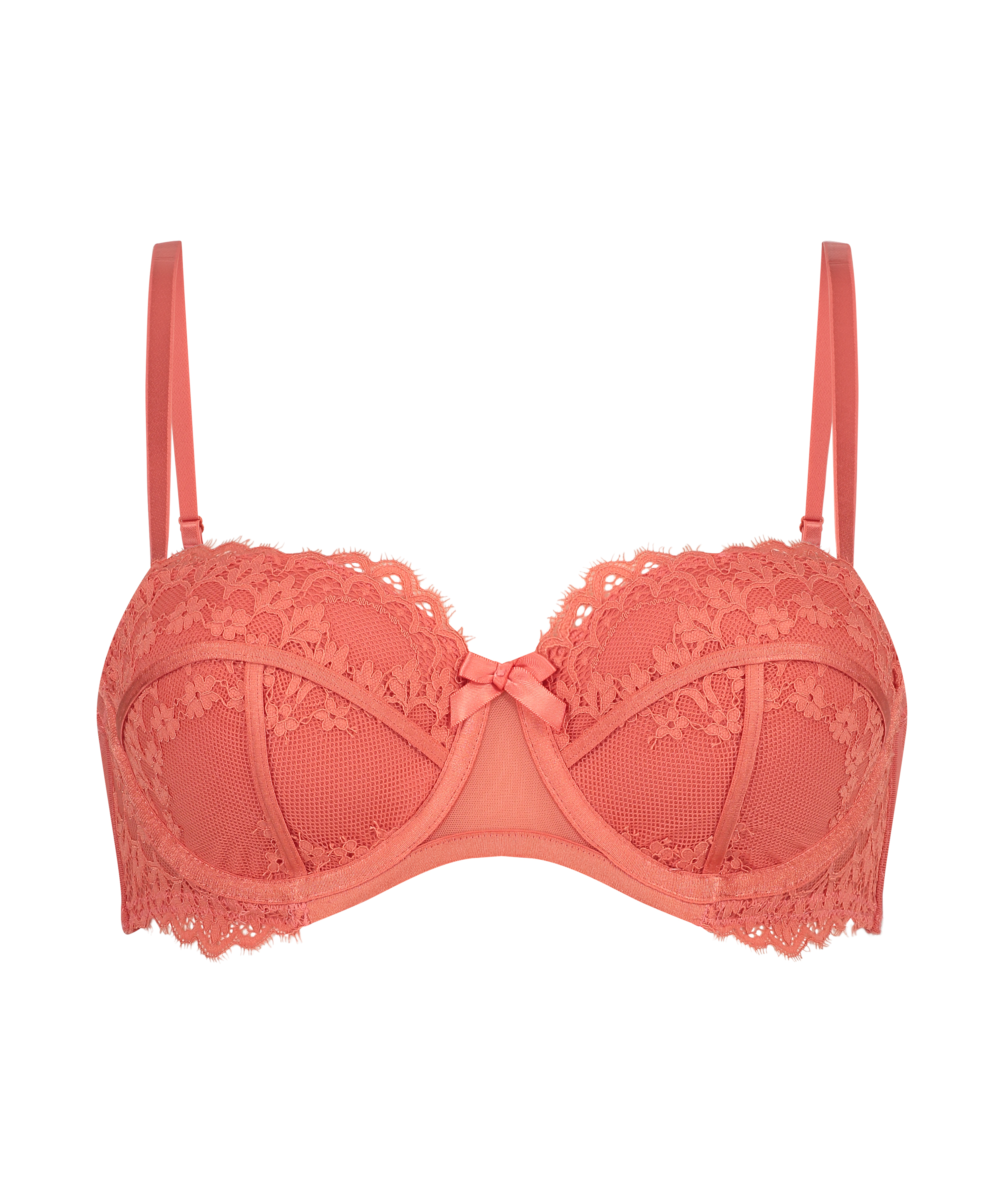 Føl deg sexy i denne vakre BH-en! BH-en er laget av et blondestoff med blomstermønster, har satengbånd under skålene og brede bånd som gir god støtte. Kombiner med den matchende trusen og du har et vakkert sett!