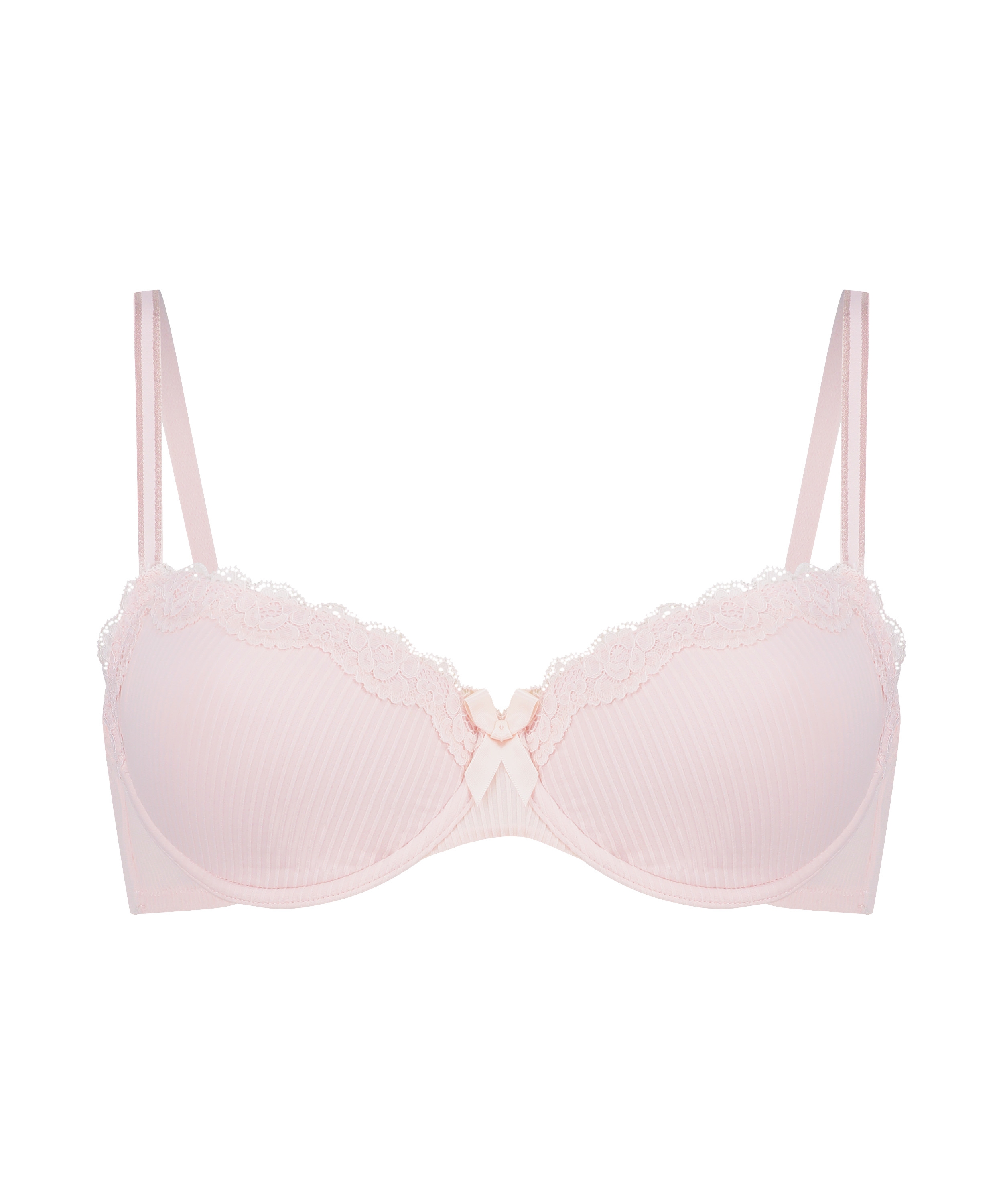 Denne polstrede BH-en er pyntet med blondedetaljer øverst på skålene. Mellom skålene finnes en liten sløyfe for et ekstra sexy utseende. Miks med de matchende tingene!