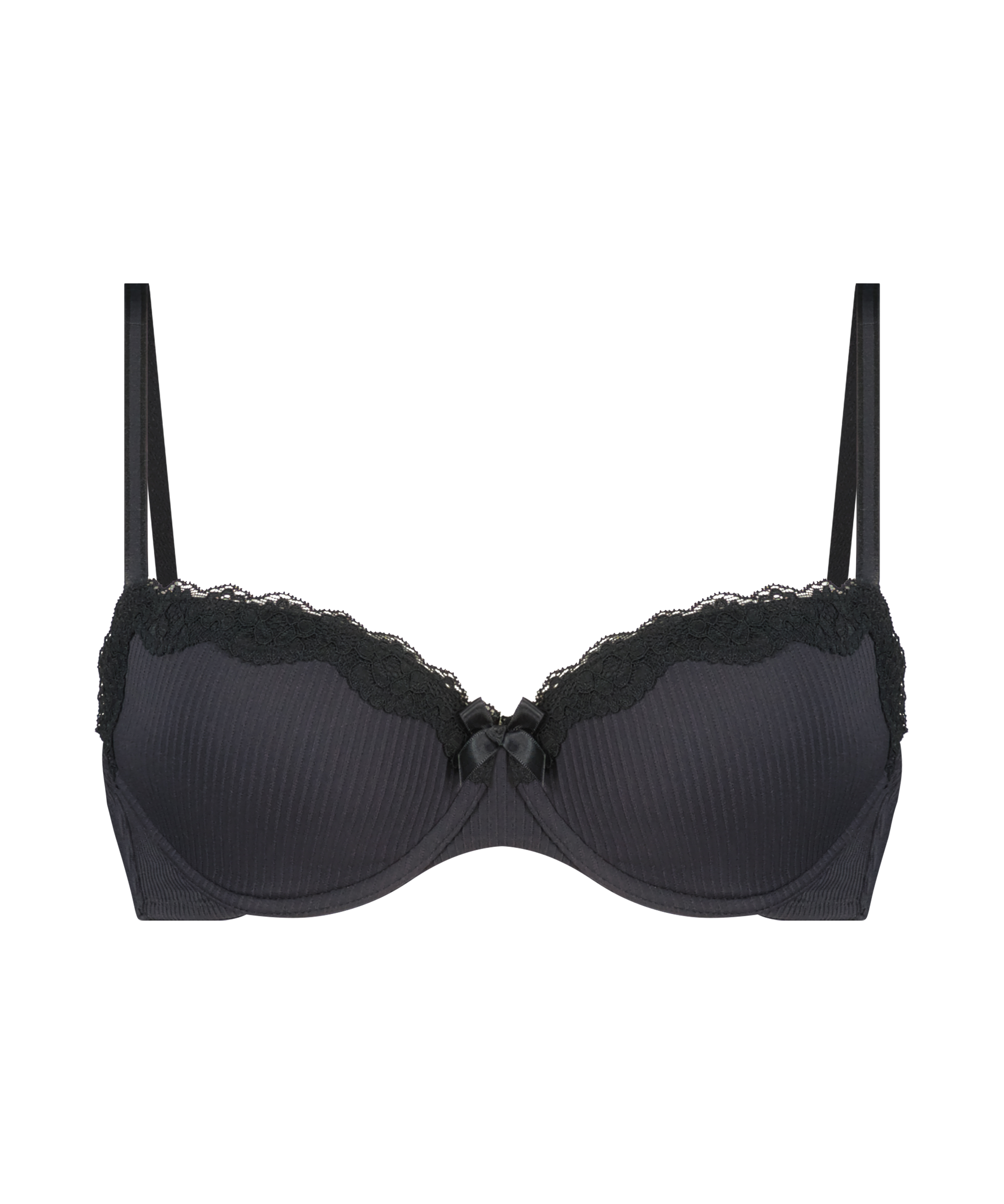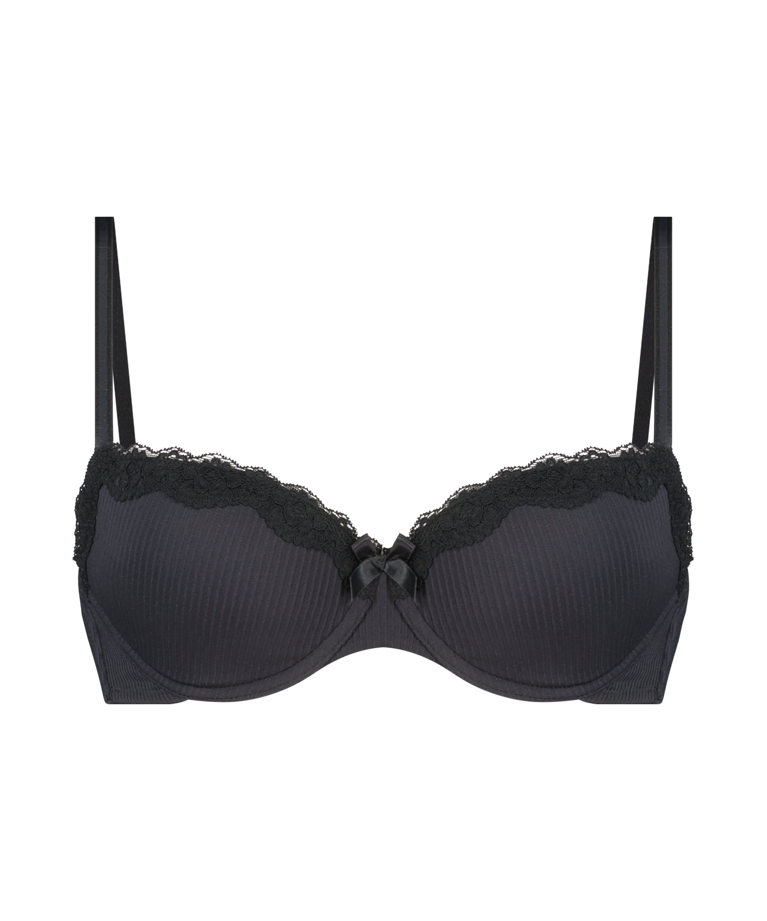 Denne polstrede BH-en er pyntet med blondedetaljer øverst på skålene. Mellom skålene finnes en liten sløyfe for et ekstra sexy utseende. Miks med de matchende tingene!