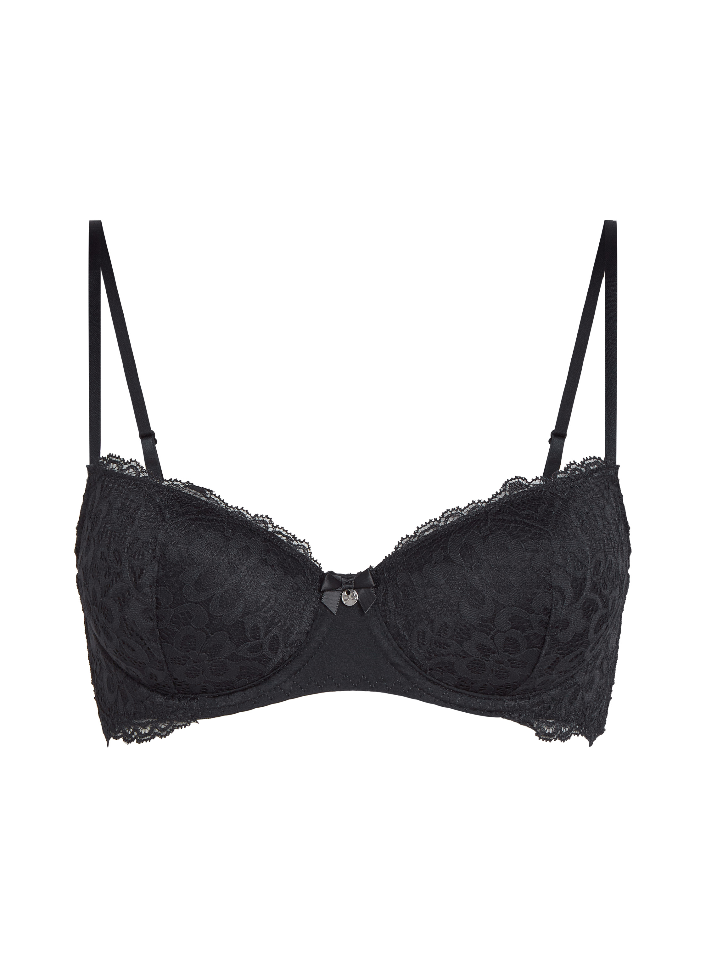 Denne BH-en er laget helt av blonder for en super sexy look. En liten sløyfe mellom koppene setter prikken over i'en. Kombiner med de matchende trusene for en komplett look!