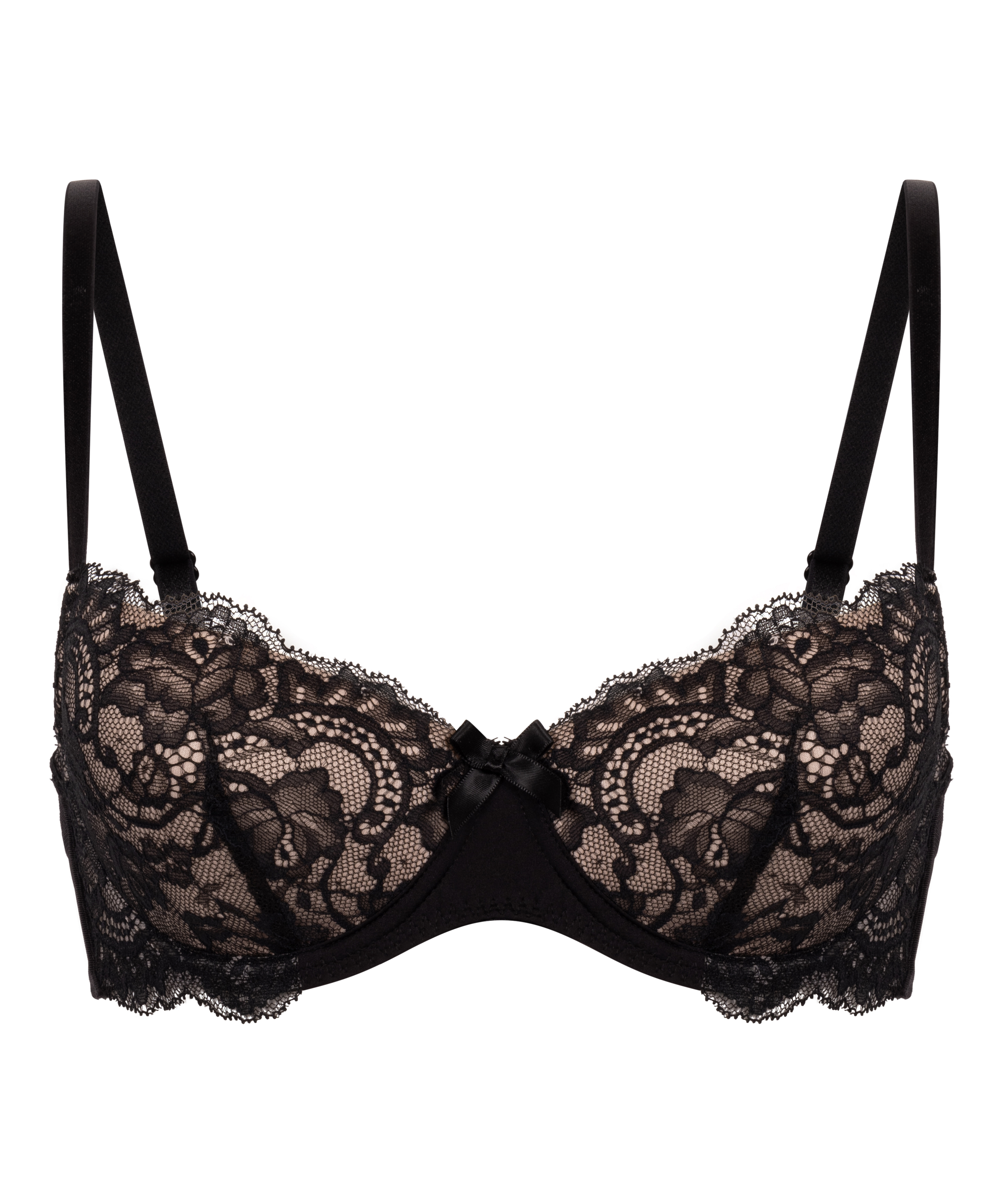 Dette er den perfekte BH-en for deg! BH-en har polstrete skåler med spiler, og skulderstroppene kan justeres etter ønske. BH-en er forseggjort med blonder og har en liten sløyfe mellom skålene.
