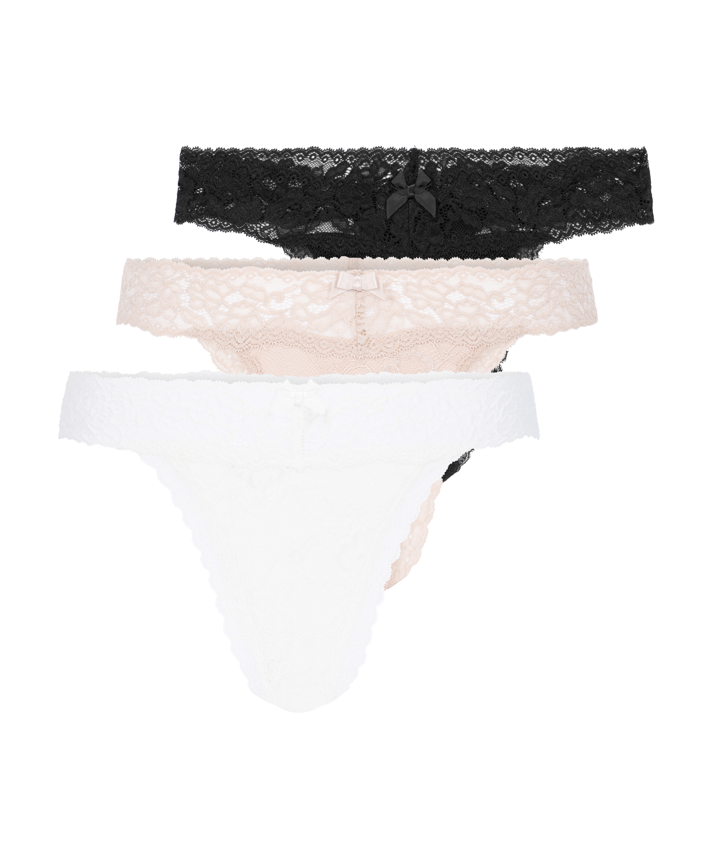 Føl deg sexy i denne g-strengen! G-strengen er forsynt med blonder og har en liten sløyfe foran som en ekstra detalj. Kombiner med matchende BH og du har et komplett sett!