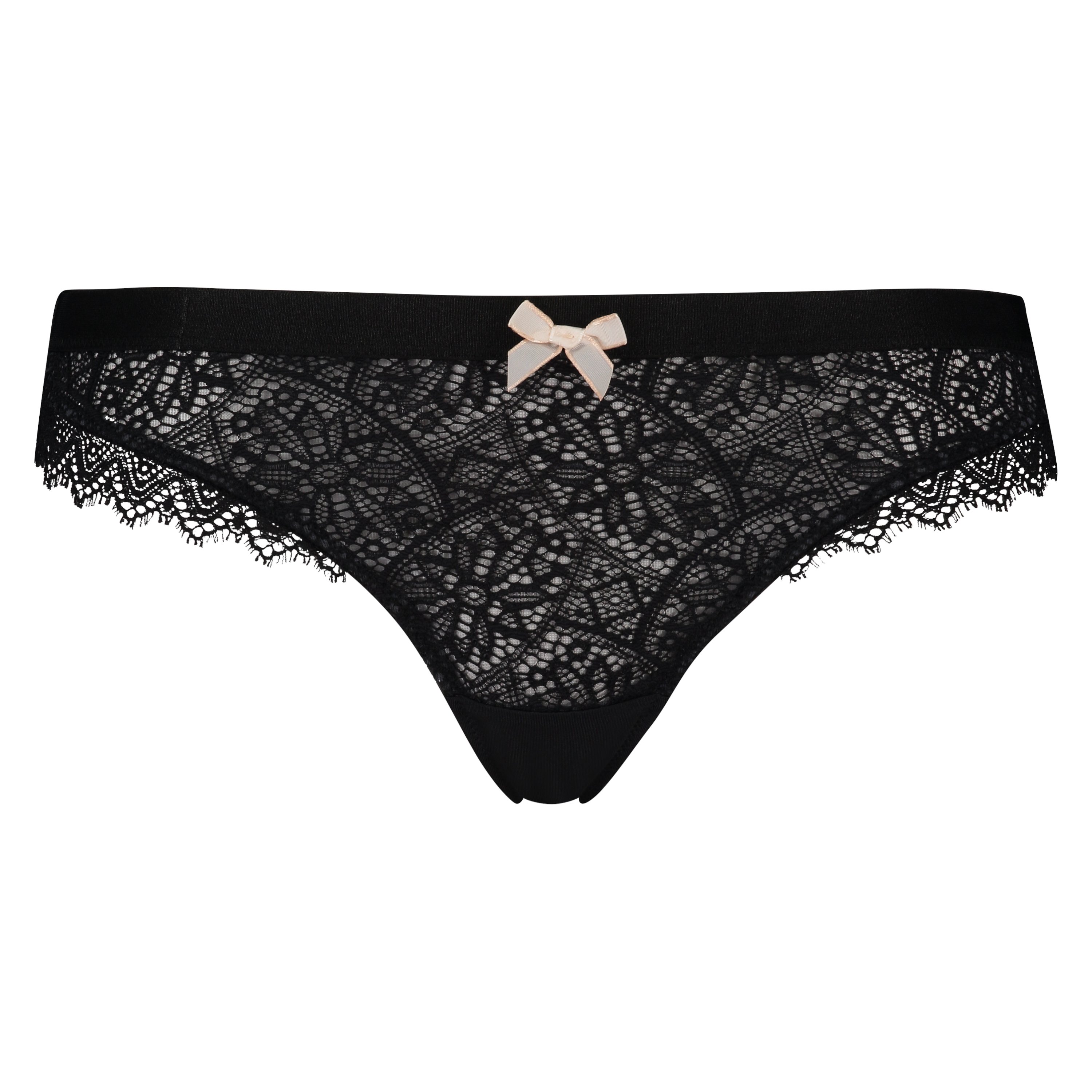 This pretty lace thong is finished with an elasticated waistband a small bow on the front. Feel sexy and feminine in this thong.