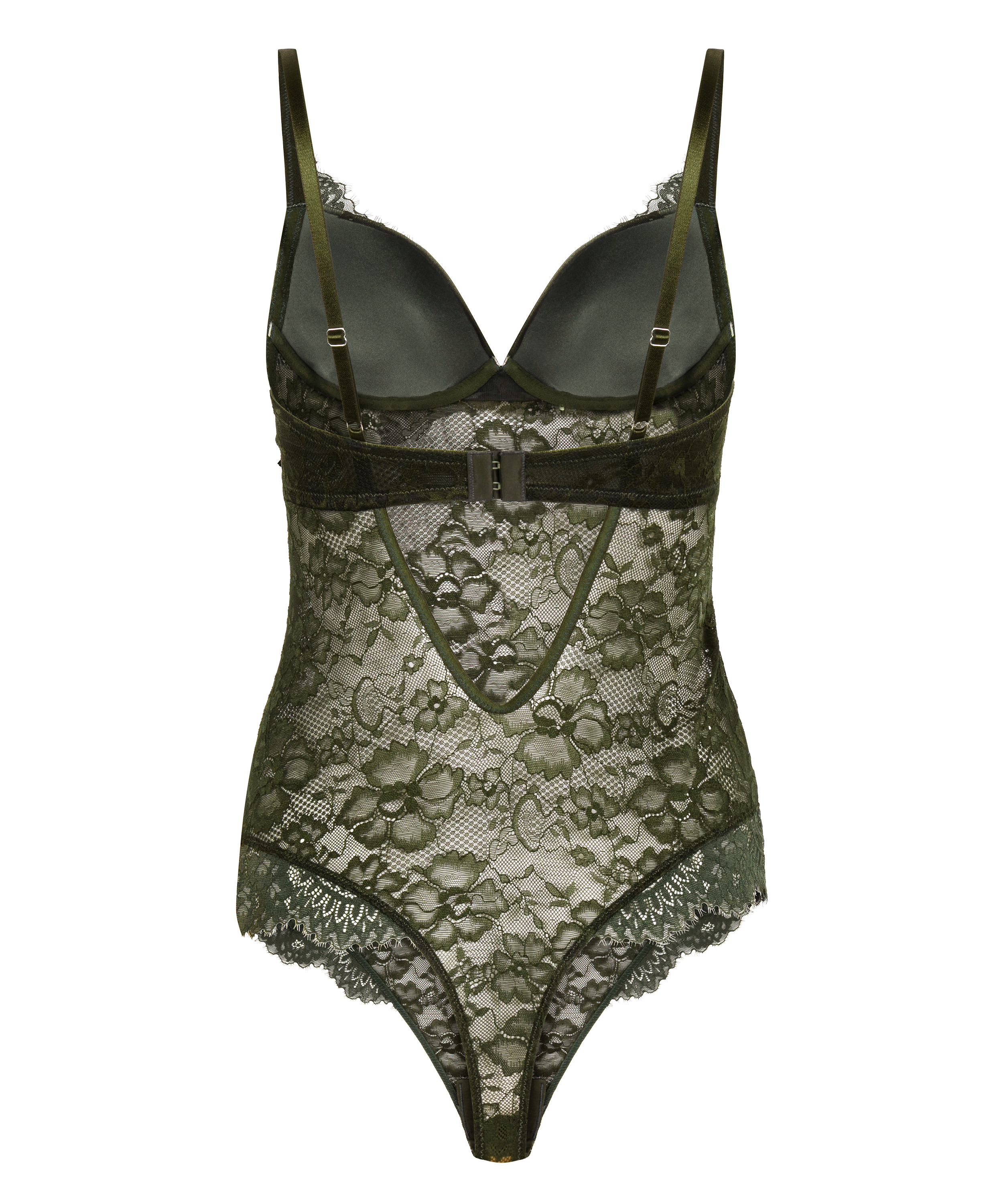 Denne bodyen har polstrede skålene med spiler, slik at du får en løftet fasong. Den heldekkende blonden omslutter kurvene dine med eleganse, det føles ut som et ekstra romantisk hudlag. Kombiner med ditt favorittundertøy for en gjennomført look.