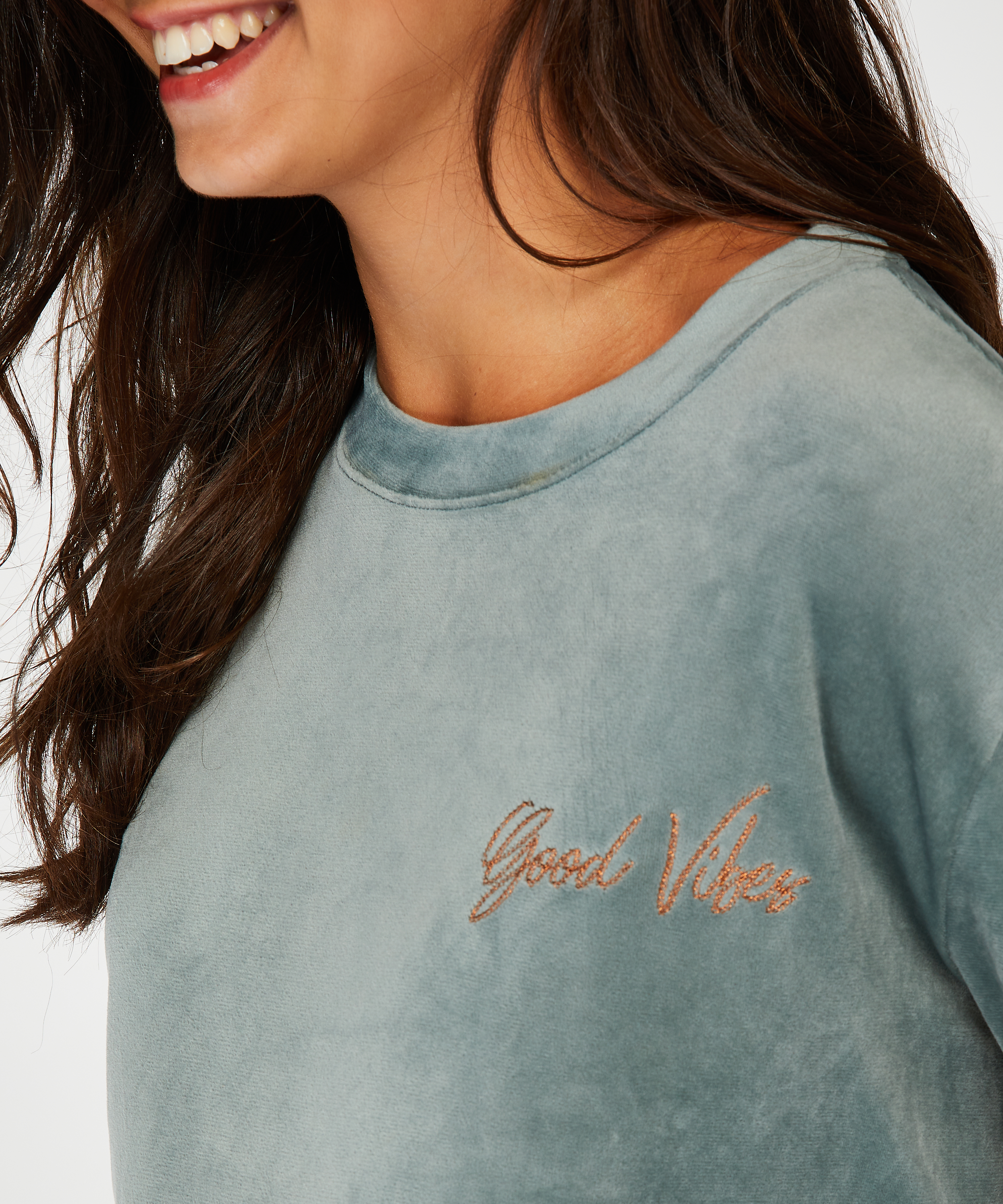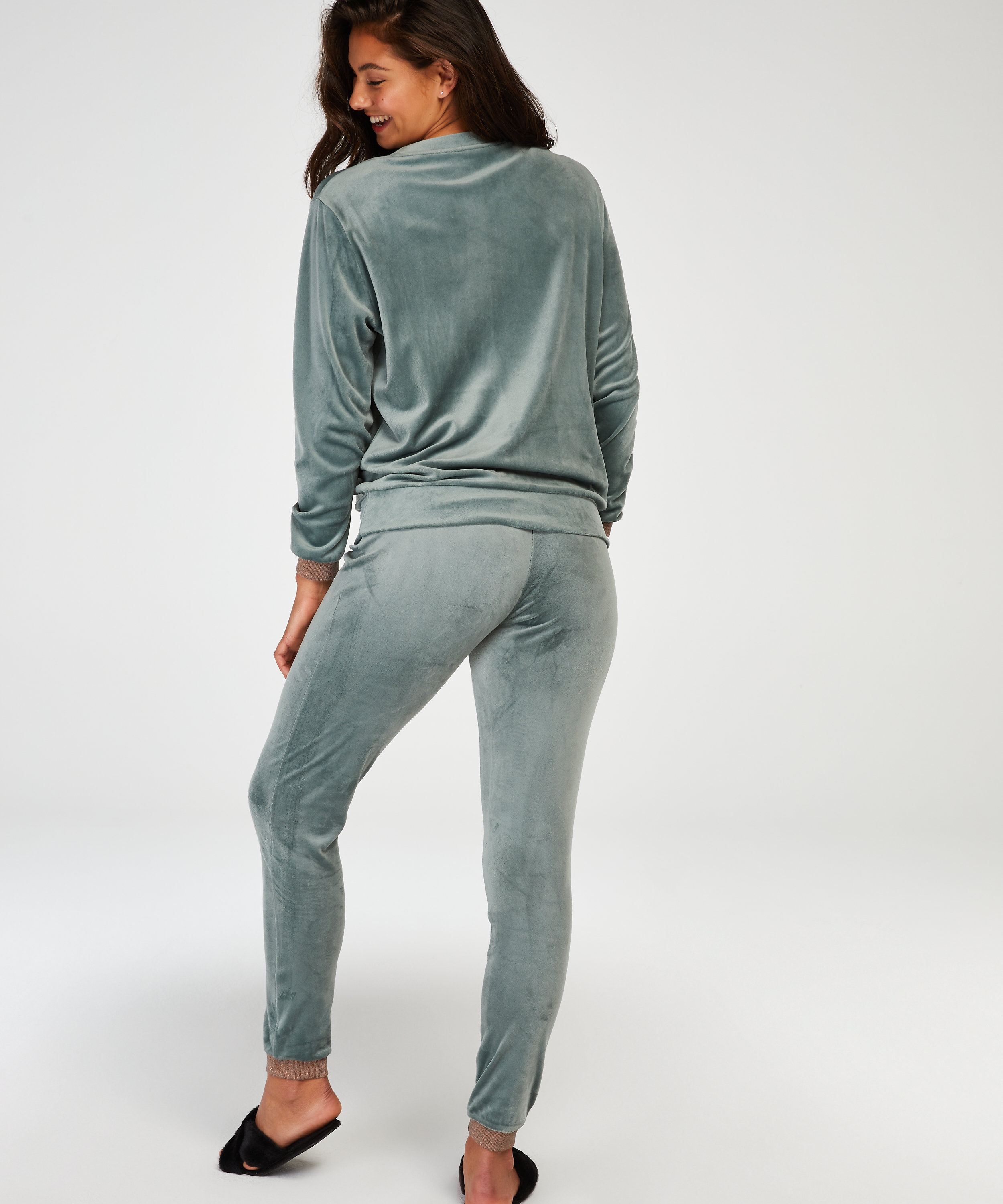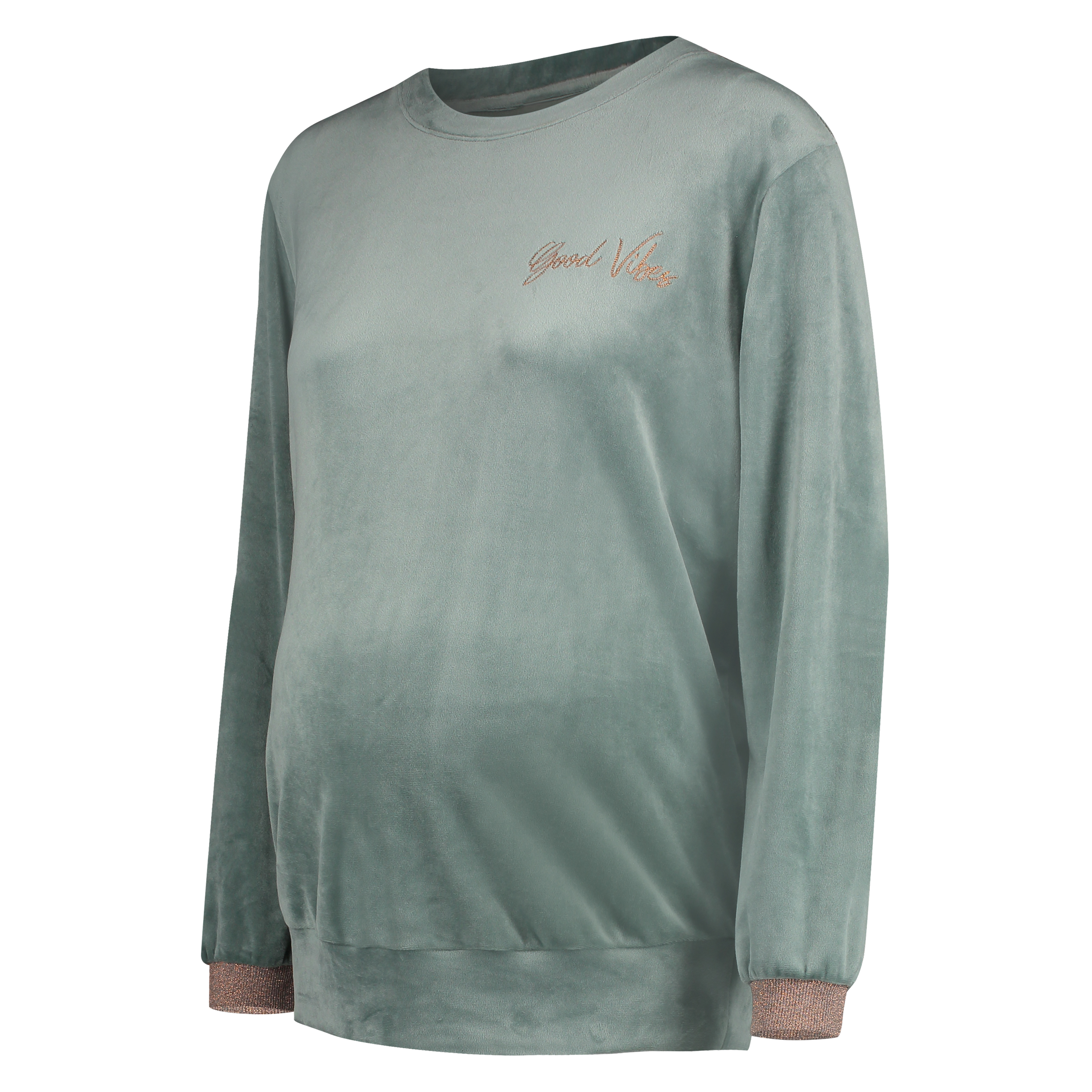 Denne supermyke toppen av velur vil du elske å ha på deg under svangerskapet! Det er nok av plass til den voksende magen din. Kombiner med den matchende buksen.