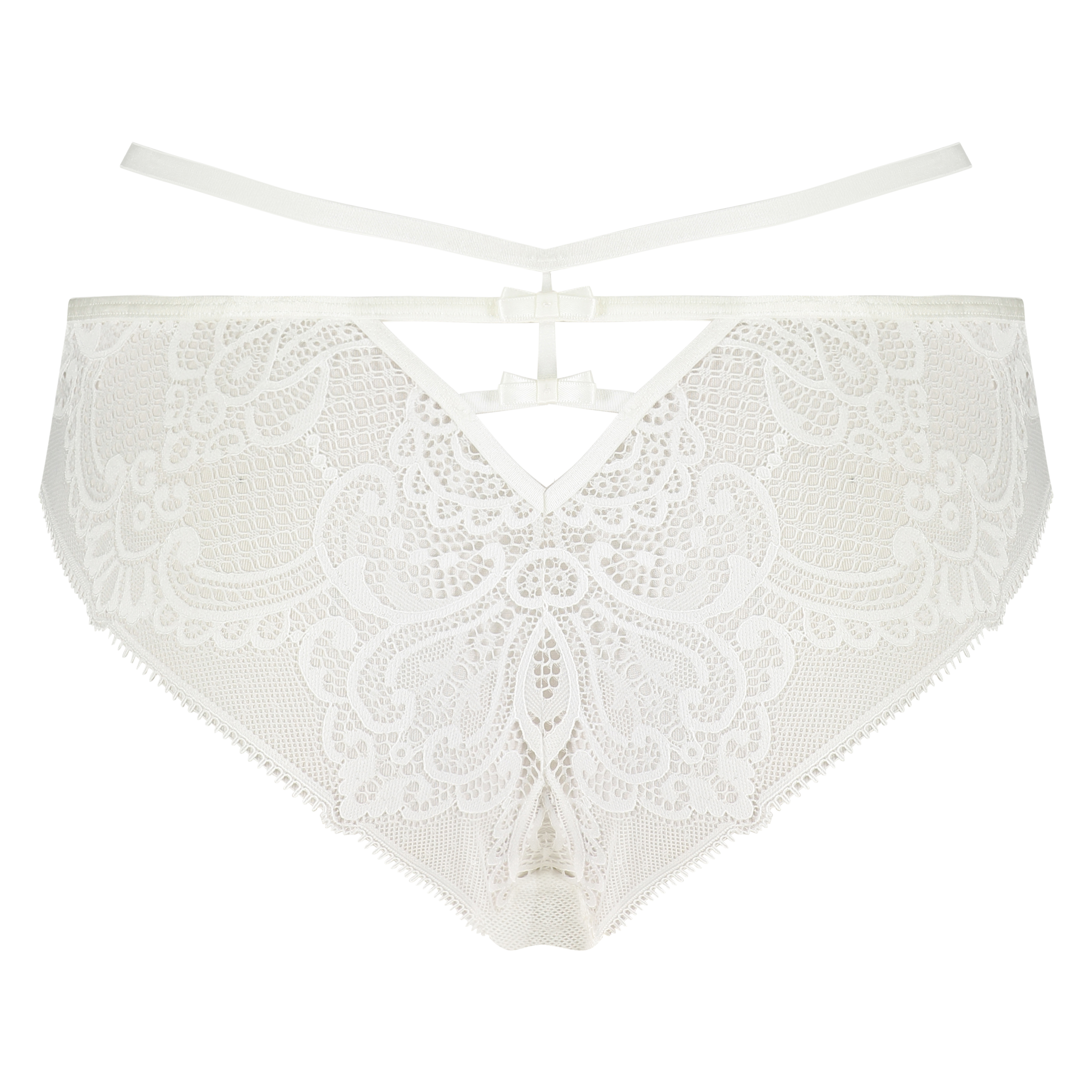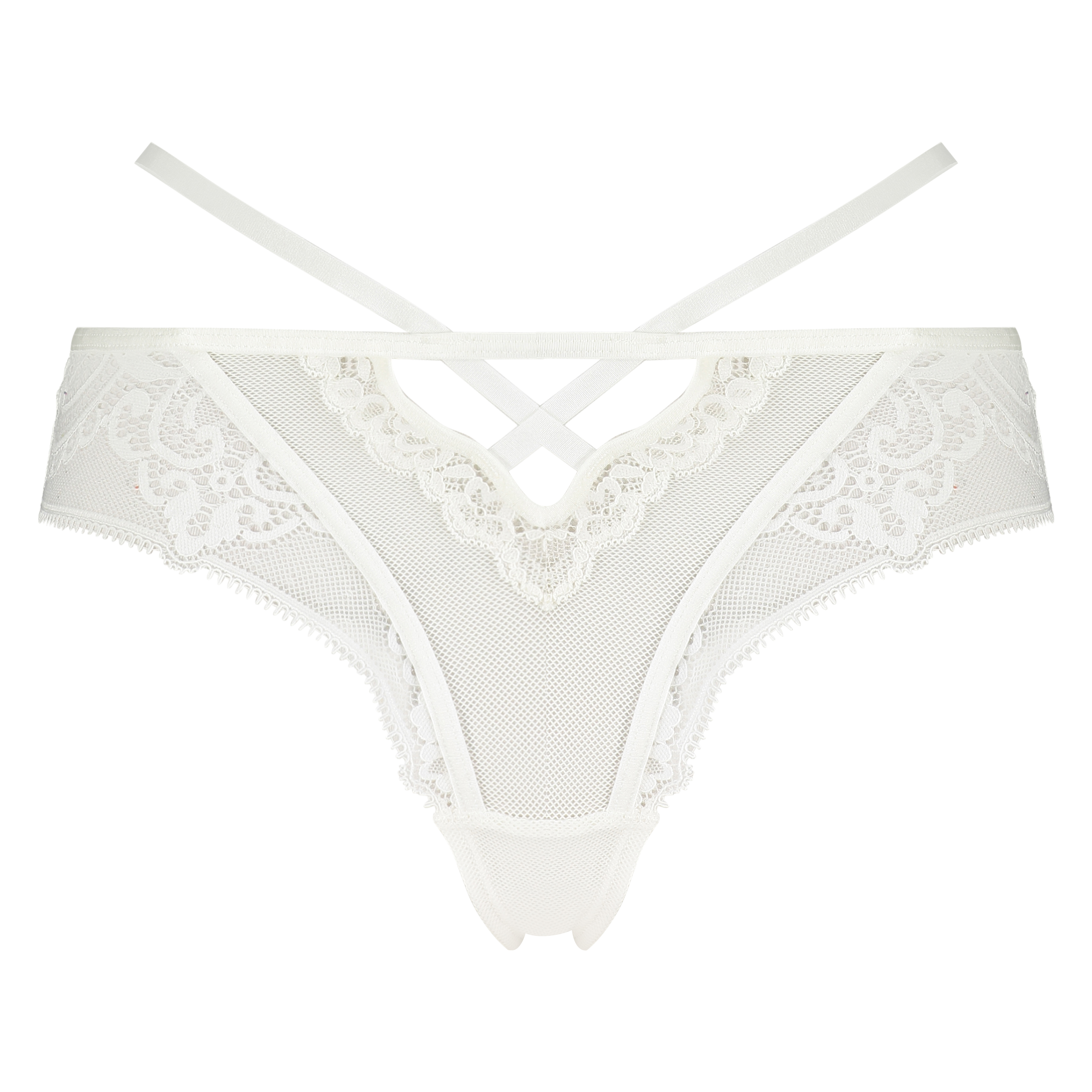 Føl deg selvsikker i denne brasilianske trusen! Den brasilianske trusen har mange detaljer som for eksempel blondene, mesh-detaljene og utskjæringene som gjør den helt spesiell. Kombiner med en matchende BH og du har et vakkert undertøysett!