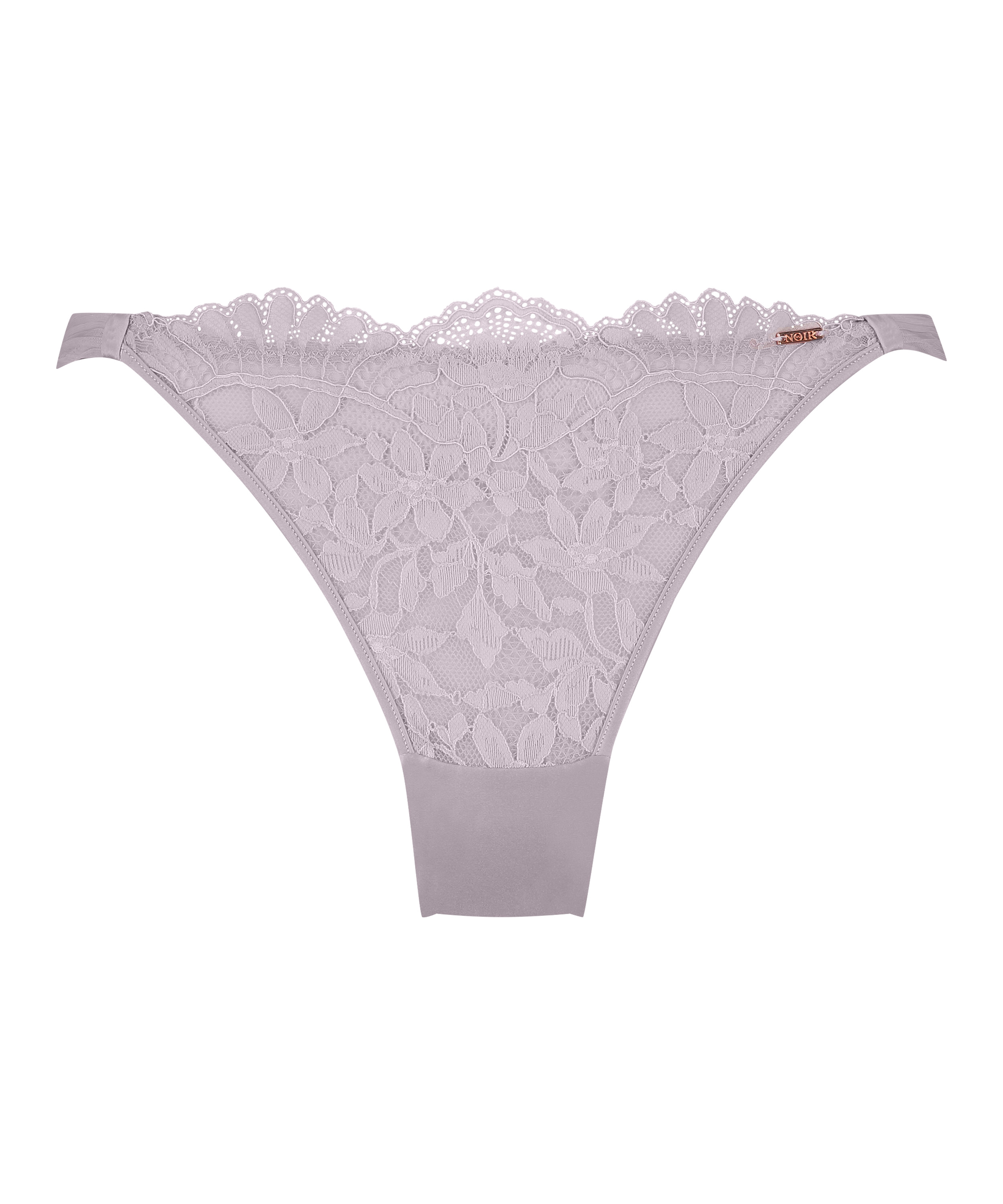 Your bottom will look adorable in these Brazilian knickers with all-over semi-transparent lace and satin fabric at the bottom. The "sneak peak" detail on the front adds a super sexy finishing touch.
