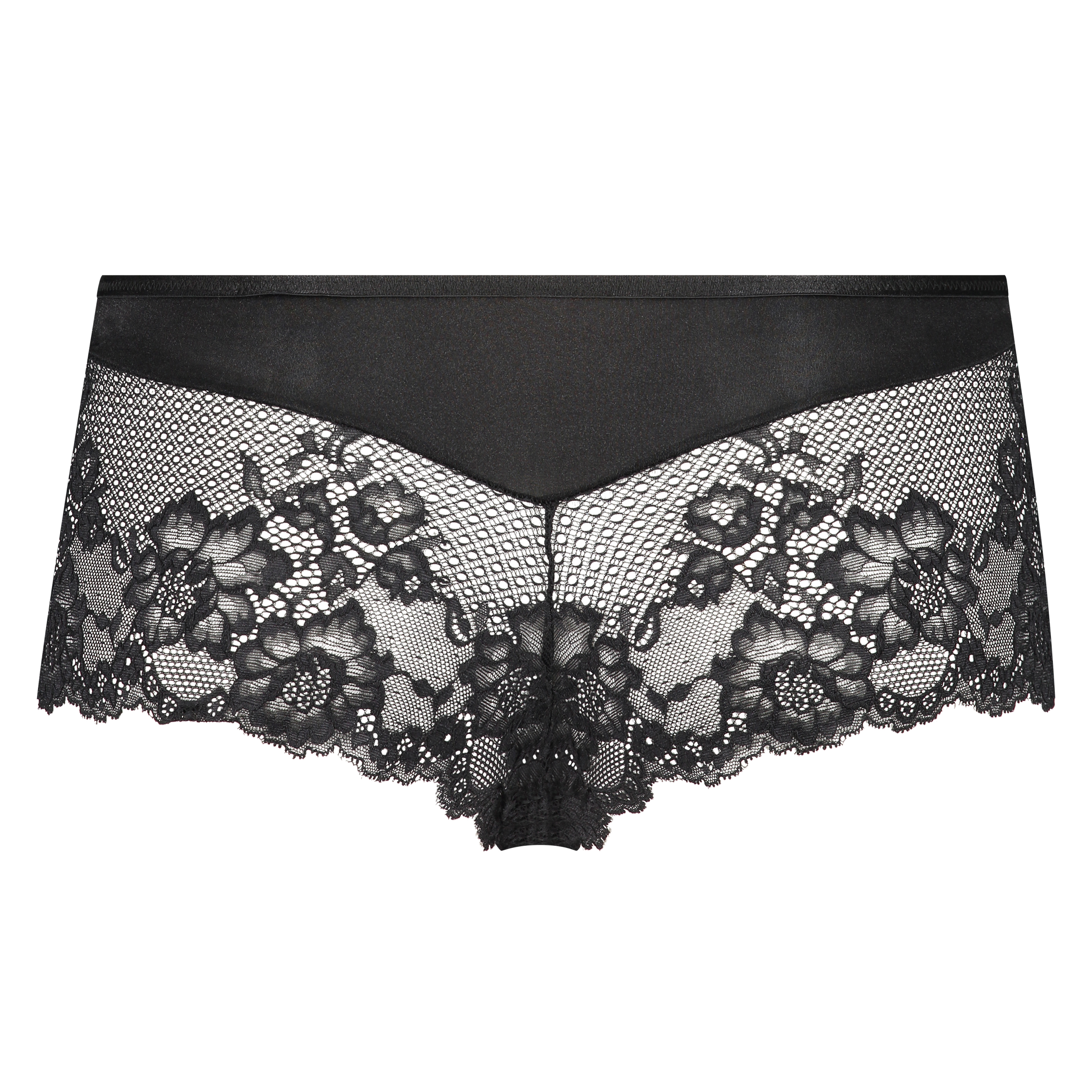 So sexy! These boxers are finished with lace at the bottom and a cut-out at the top. The small bow in the middle adds a finishing touch.