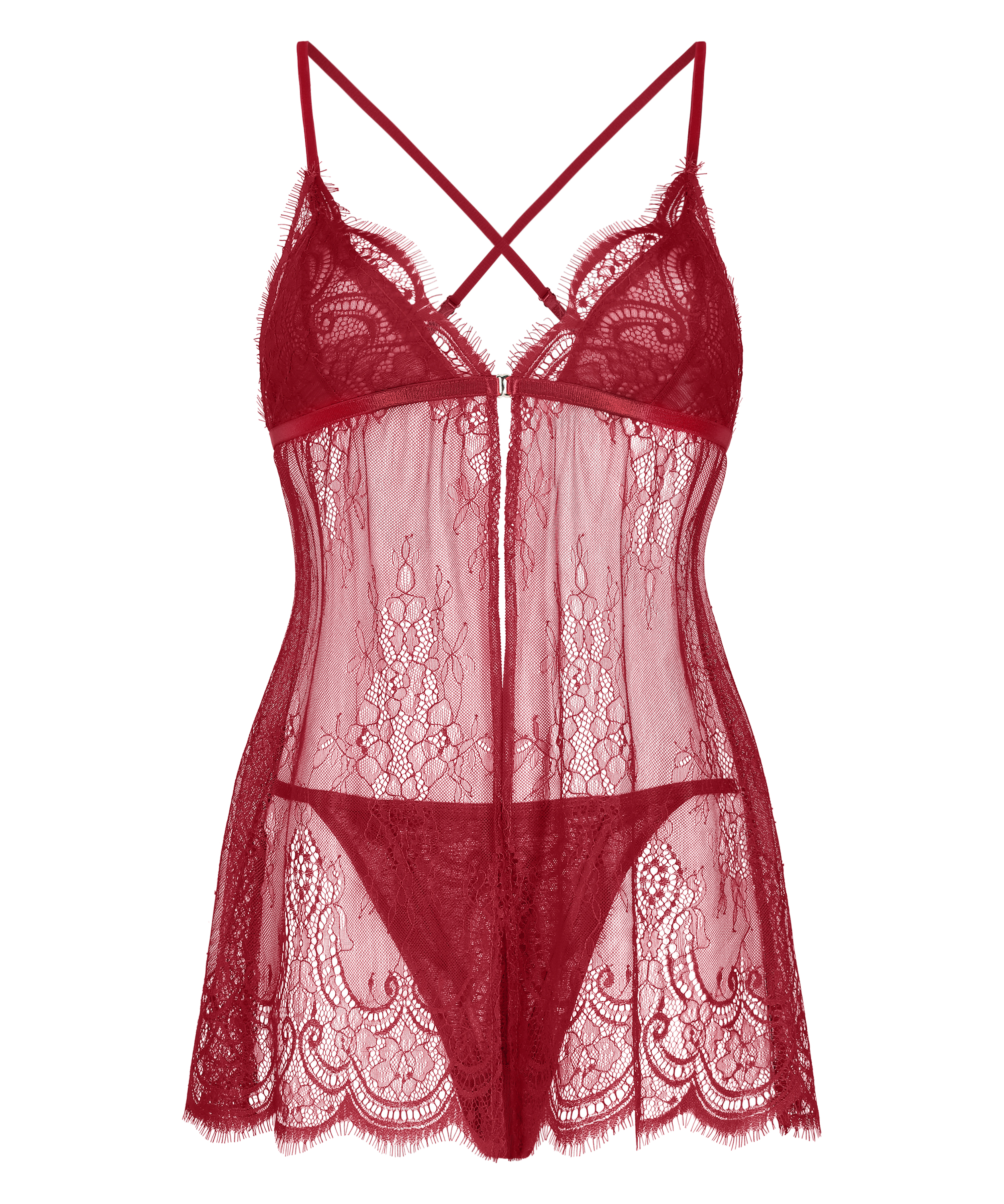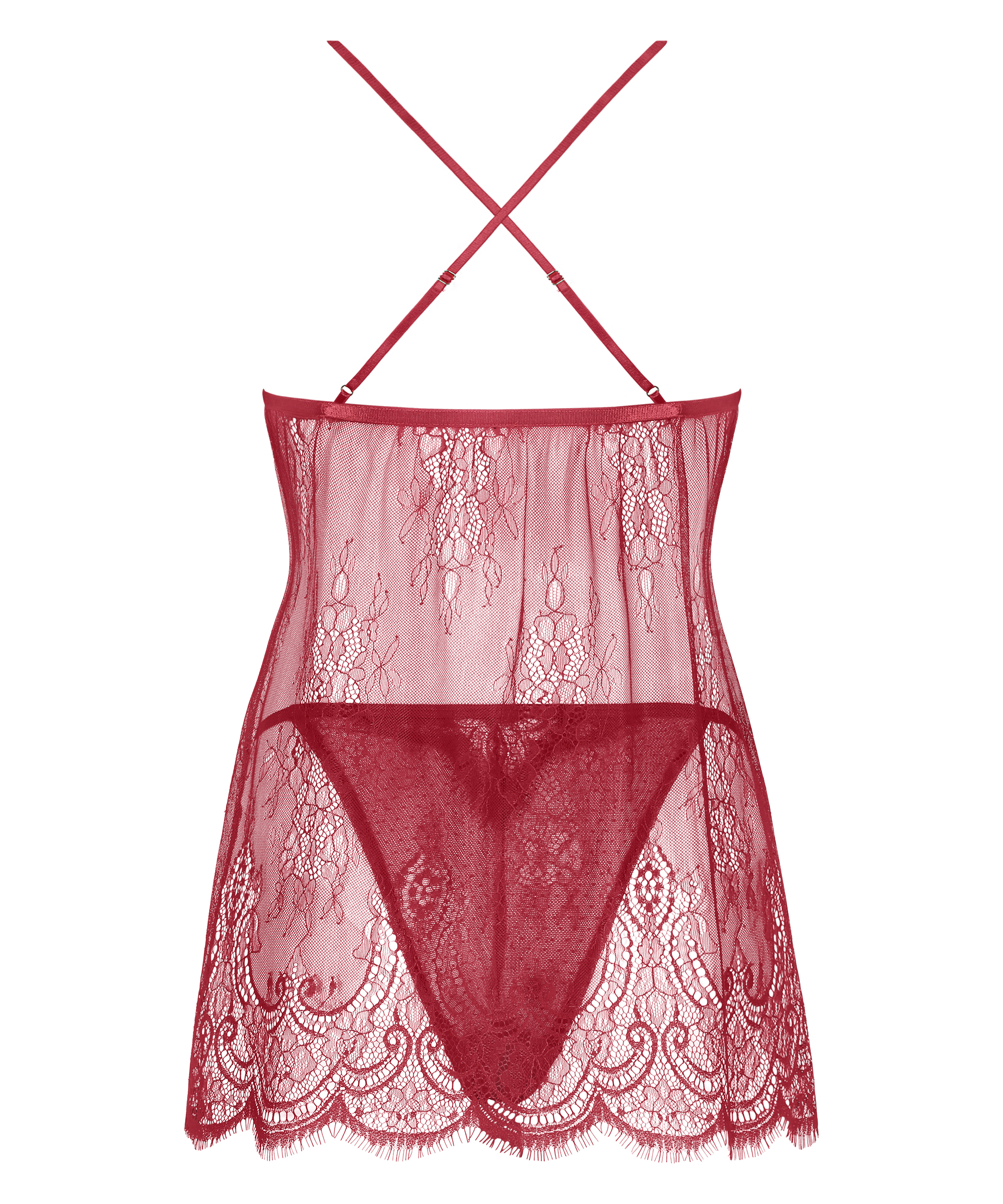 Føl deg komfortabelt sexy i denne babydollen med bøyler! Den er prydet med fine blondedetaljer på skålene og justerbare spaghettistropper, og byr på både komfort og stil. Babydoll kommer med en matchende truse i en blanding av blonder og mesh, for et matchende ensemble som utstråler sensualitet!
