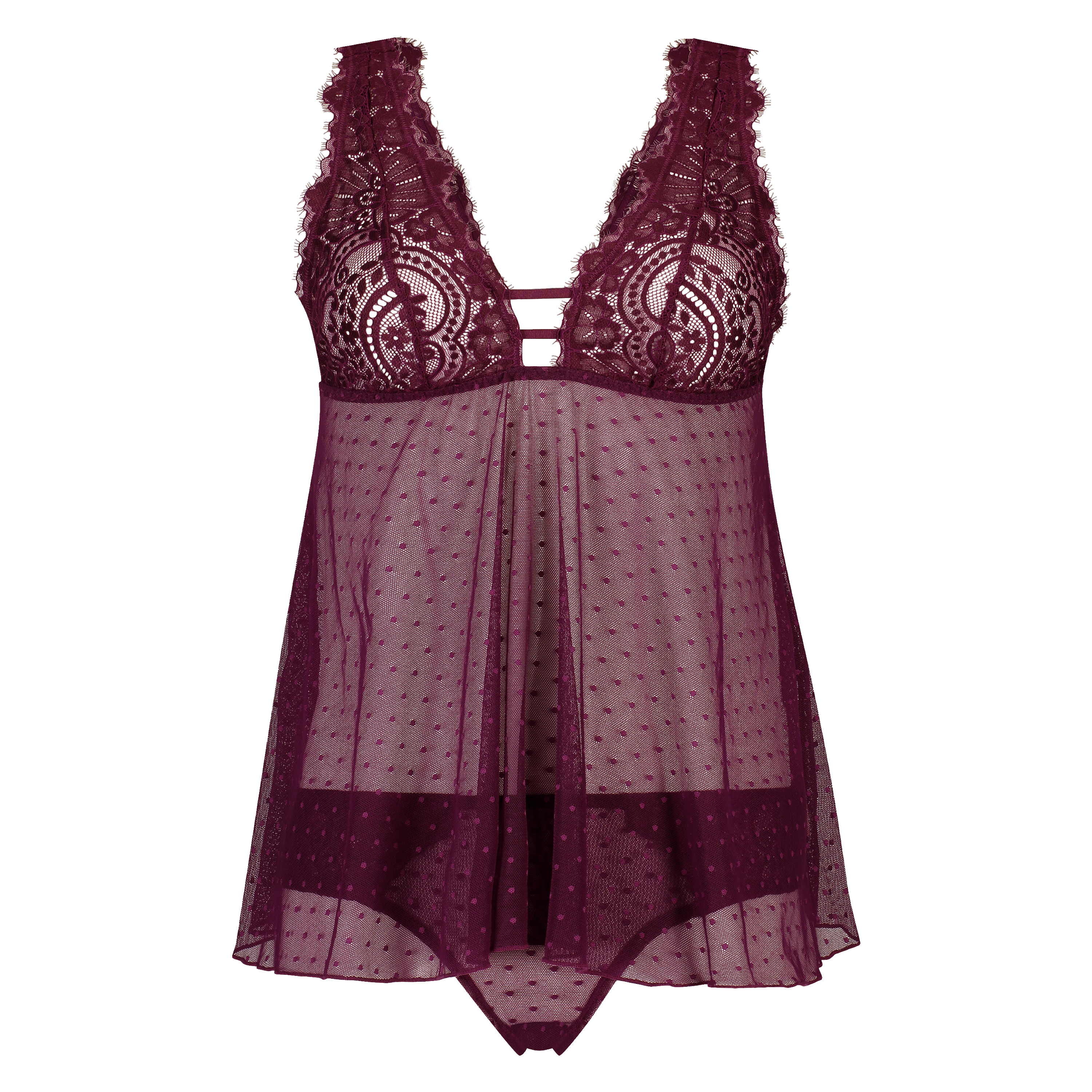 Isn't this cami set lovely? The knickers are made from semi-transparent lace. The top features a combination of mesh and lace and is finished with strapping details.