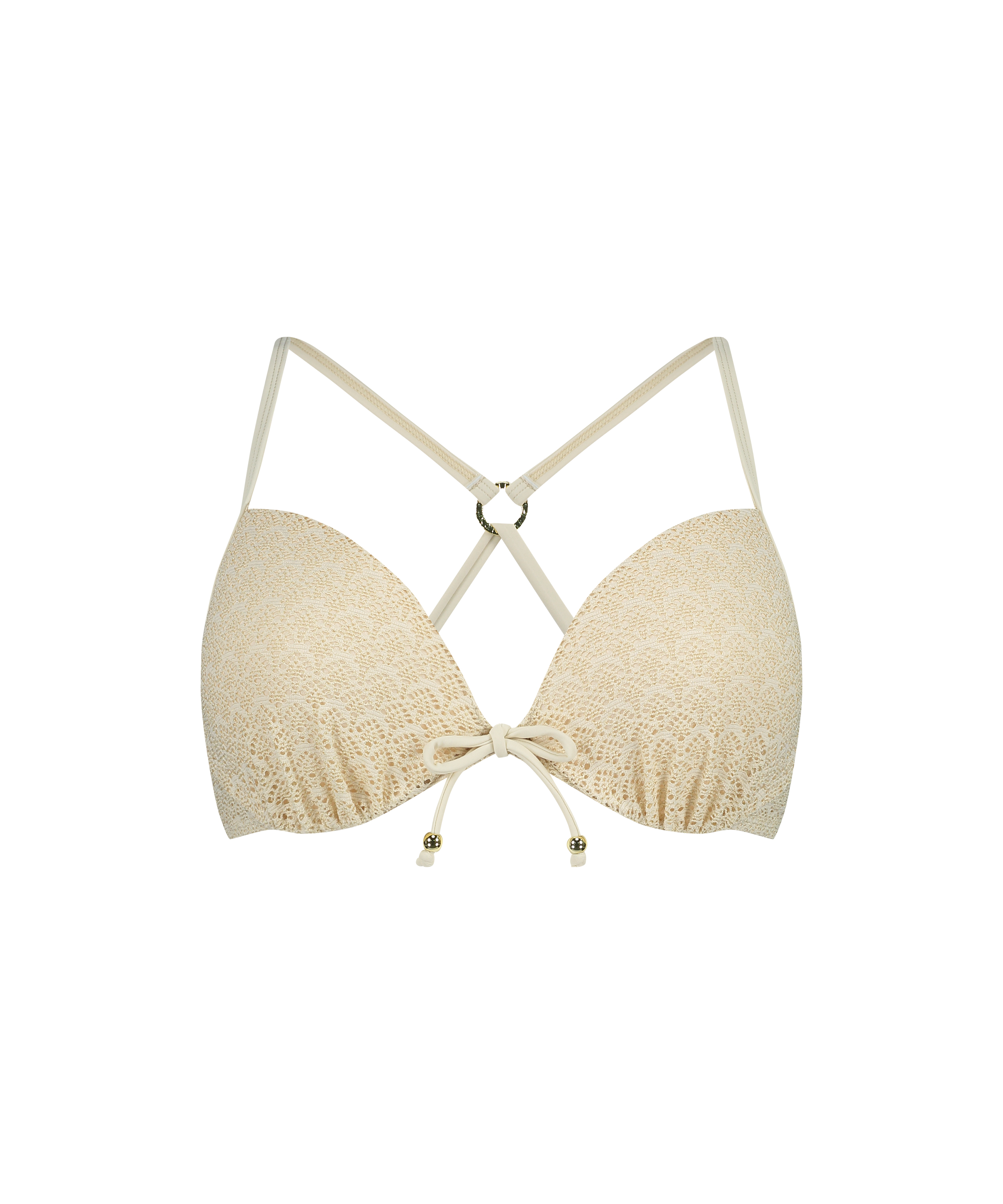 Bikinitoppen har en pushup-effekt. Kombiner med fint tilbehør som en hatt, så er du klar for strandferien.