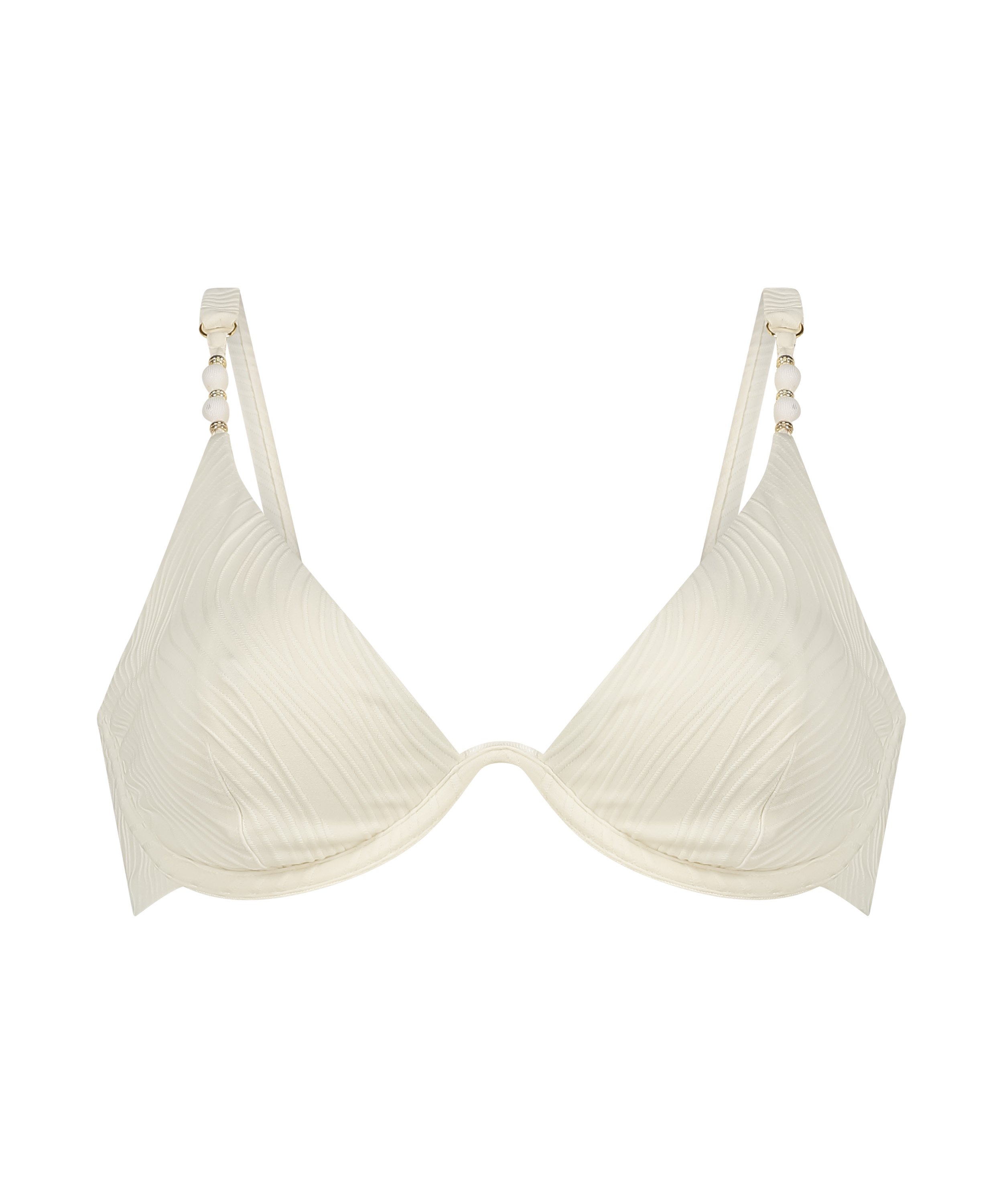 Unn deg luksus på stranden med bikinitoppen vår! Designet med bøyler med en flatterende dyp utringning, som tilbyr både støtte og stil for en selvsikker silhuett. Perler gir et snev av eleganse, mens den enkle lukkeklemmen i ryggen gir en sikker passform. Kombiner den med den matchende underdelen for å lage et fantastisk ensemble som er perfekt når du soler deg ved bassengkanten!