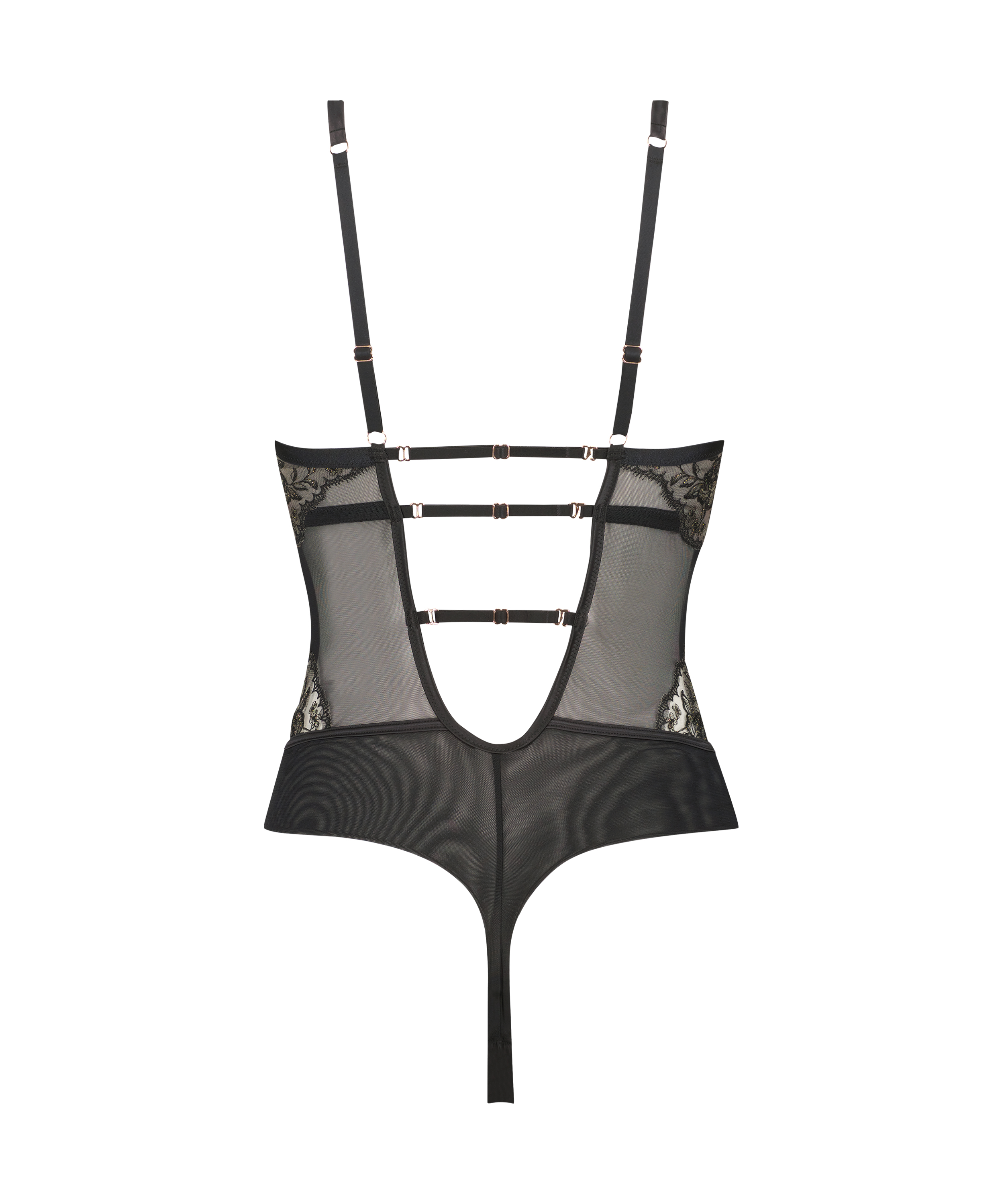 Lag en elegant look med denne vakre bodyen. Den upolstrede BH-en gir maksimal komfort. Bodyen er gjennomsiktig, med blondedetaljer. Se andre elementer fra Noir-kolleksjonen som passer til!
