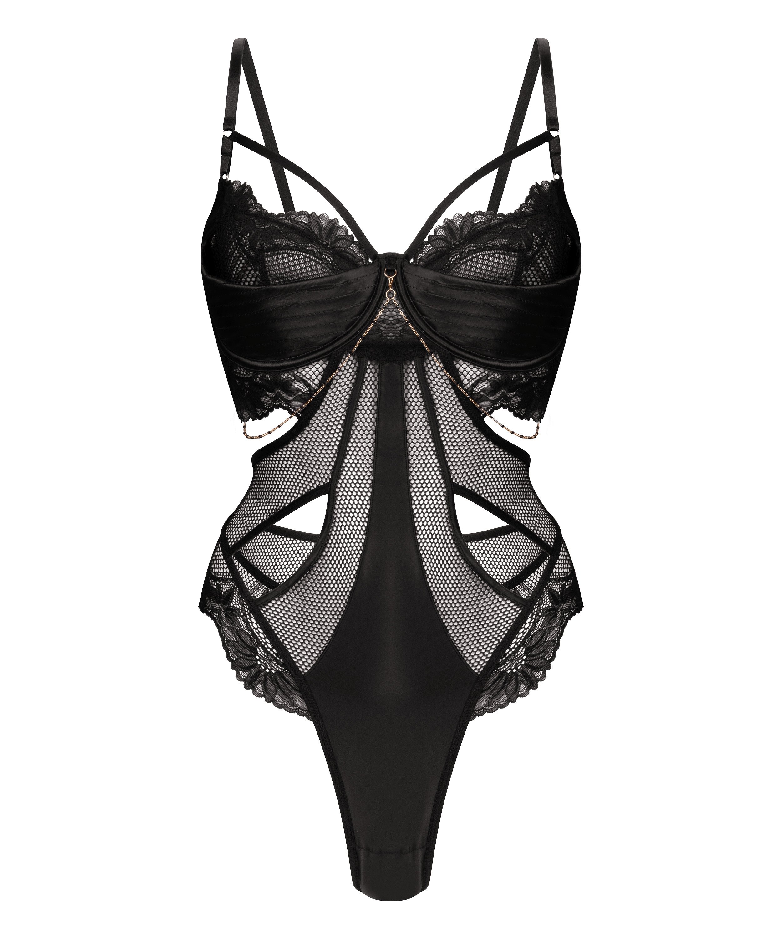 Den Belladonna-bodyen har spiler og gir deg en sexy og feminin stil med en liten dose forførelse. Bodyen har et vakkert stoff som er flatterende for hele kroppen, i tillegg har den strategisk plasserte delvis gjennomsiktige blonder og stroppedetaljer som er forførende. Del av vår Private-kolleksjon.