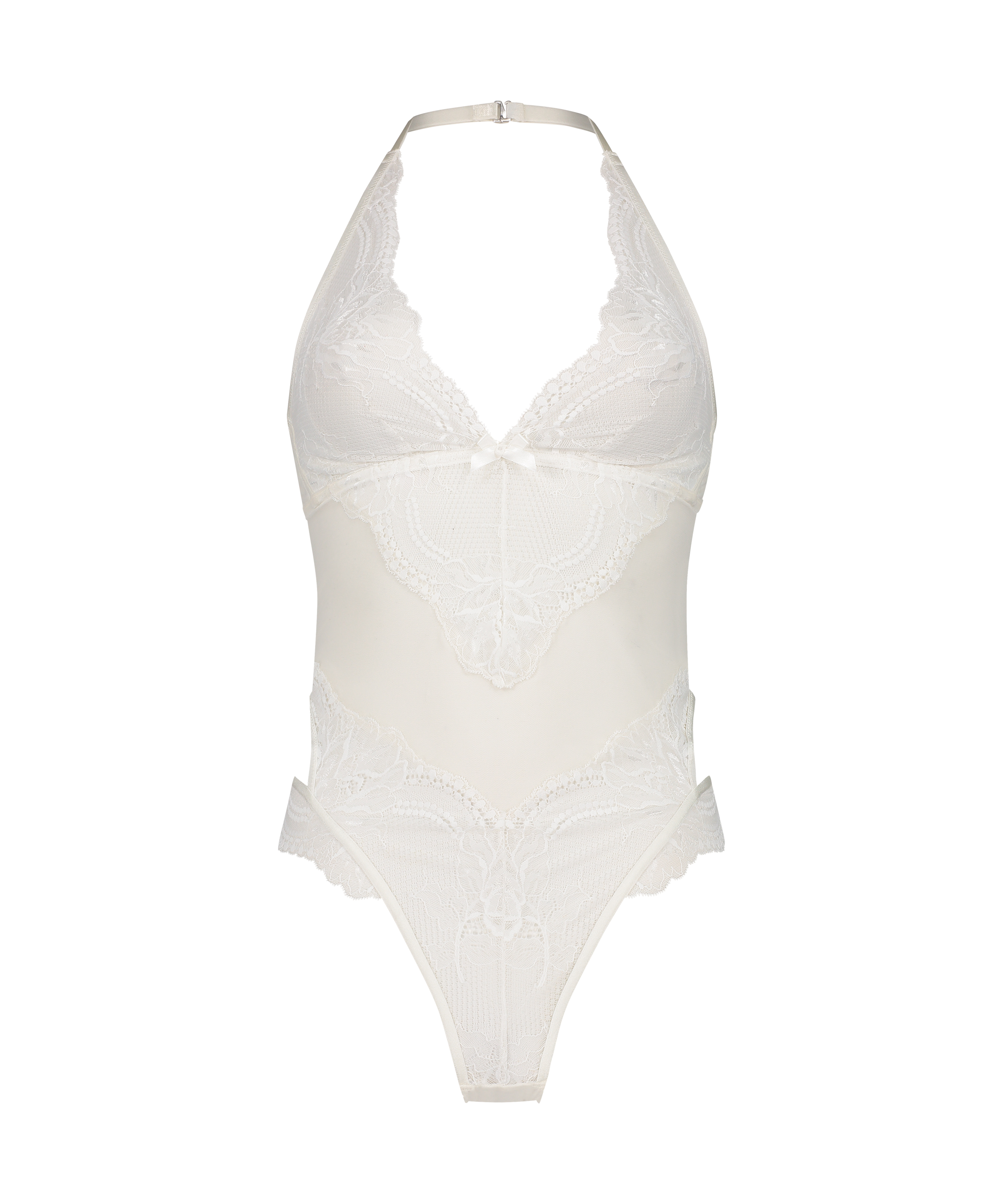 Ta ting til neste nivå med denne superromantiske bodyen! Med halvt gjennomsiktig look og masse blondedetaljer. Med utskårne detaljer på hoftene for en pirrende look. Kombiner med en kimono for en gjennomført stil!