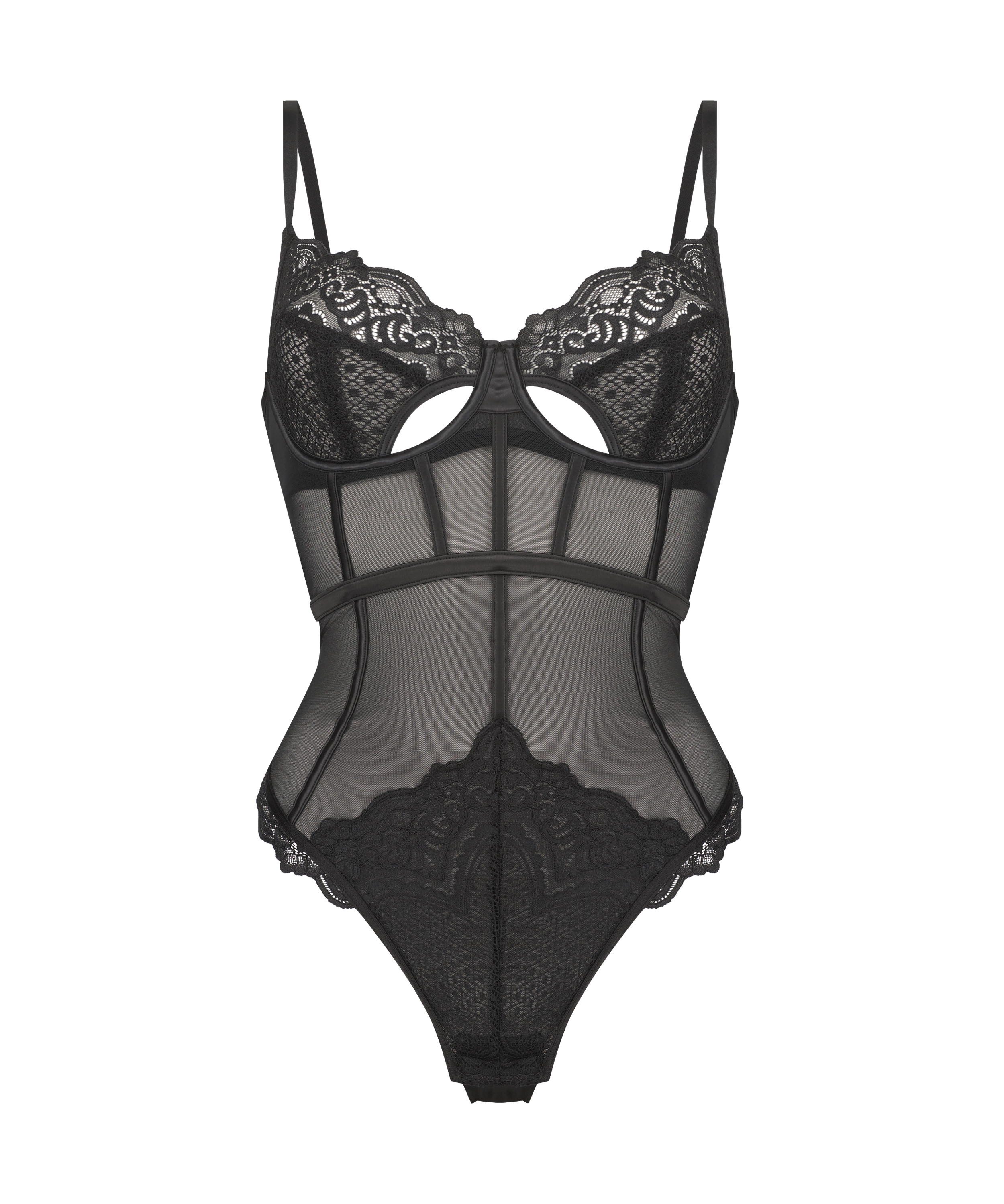 Føl deg vel i denne bodysuiten. Det flortynne materialet gjør at bodysuiten sitter godt på kroppen. Den har åpen rygg med blondedetaljer. Kombiner med en kimono til et fantastisk antrekk.