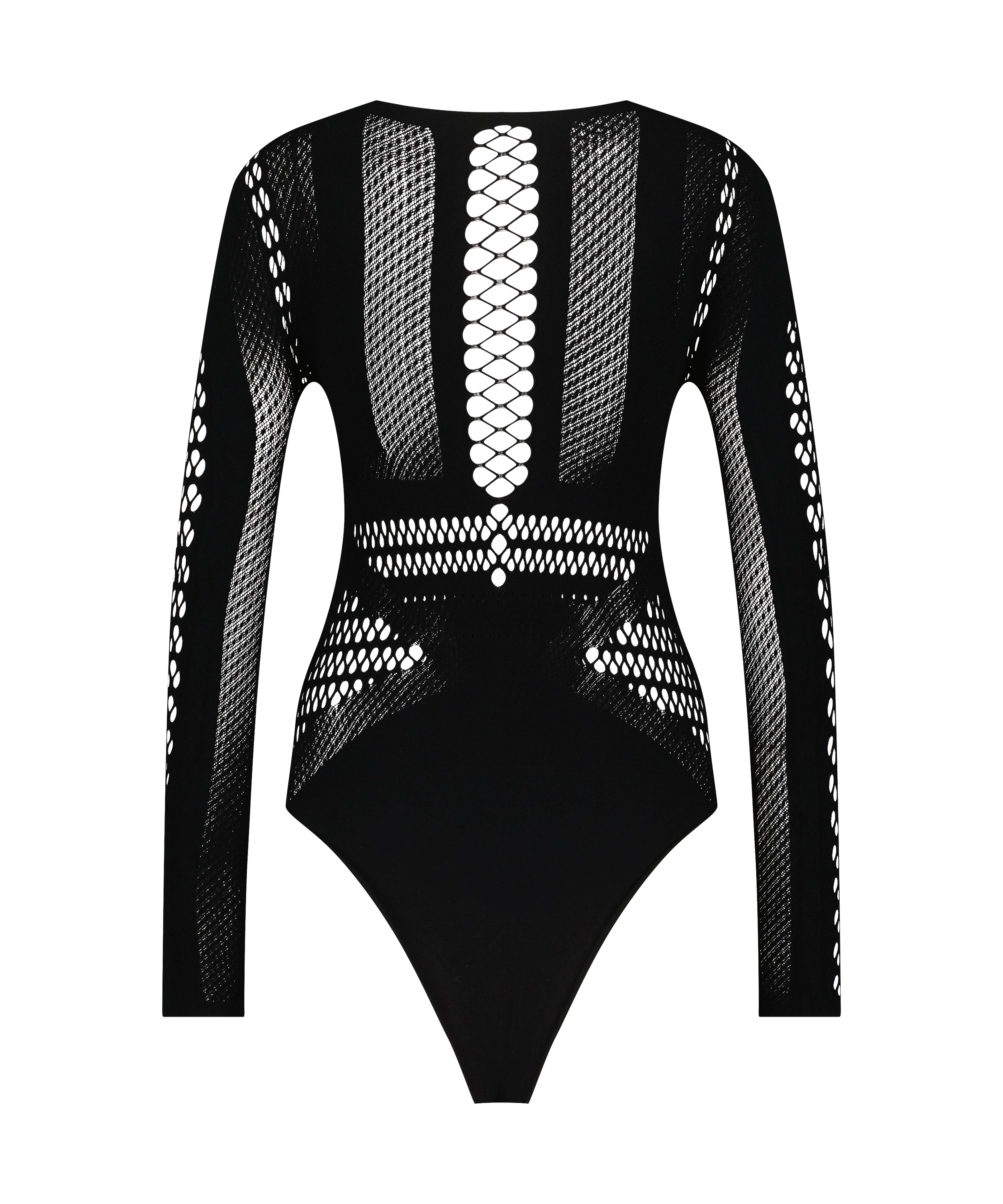 Har du planlagt en tur på byen? Med denne lekre langermede, utskårne bodyen vil du ikke bli glemt med det første! Bodysuit-en har en tettsittende passform som former fasongen din, i tillegg lukkes den med trykknapp nederst slik at den holder seg på plass. Den har også en leken høy skjæring slik at du blir ekstra vakker!