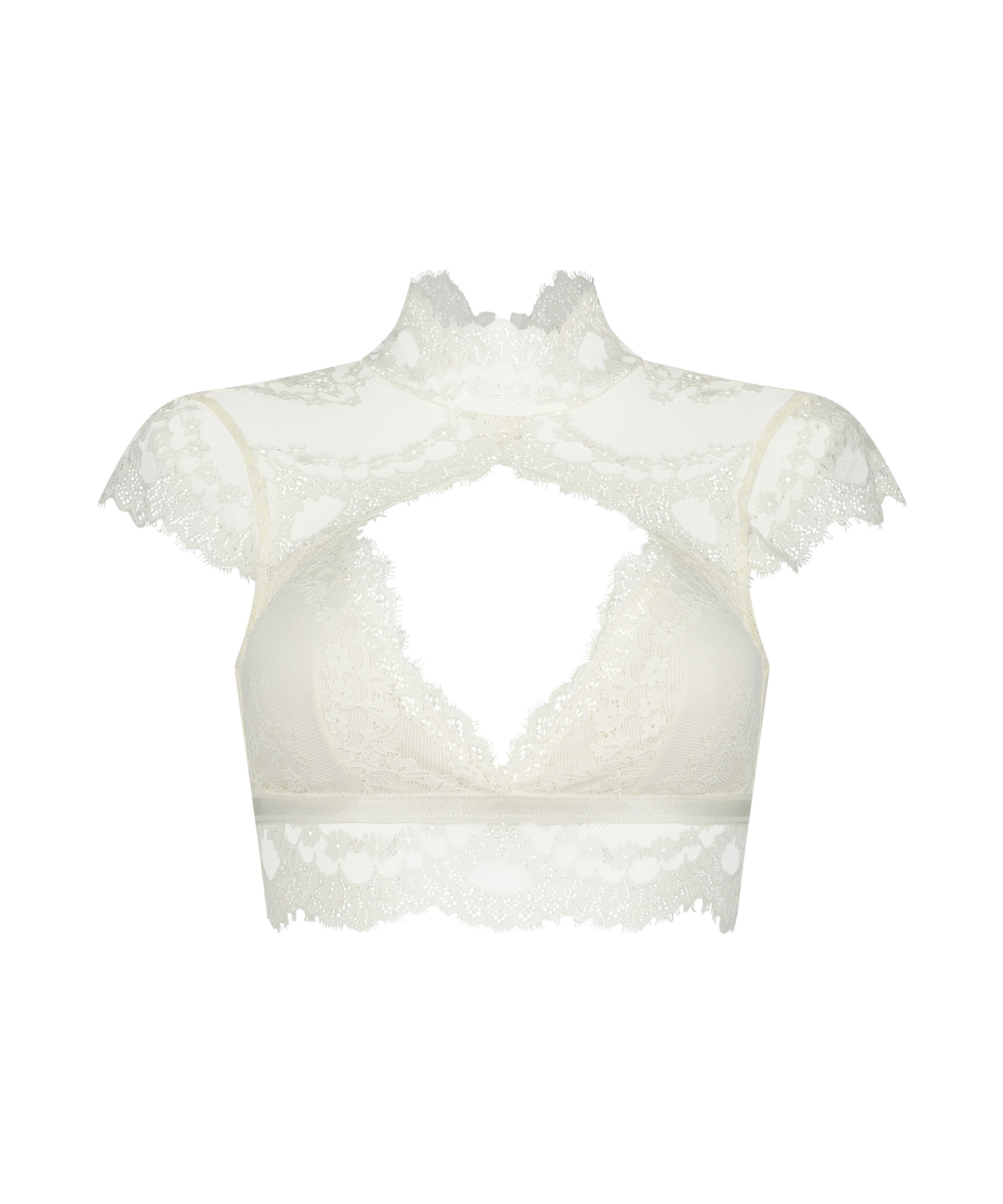 Føl deg sexy i denne bralette-toppen! Braletten består av blonder og har korte ermer, sexy, åpen rygg og satengsløyfer bak på kragen. Toppen er også perfekt for en kveld på byen!