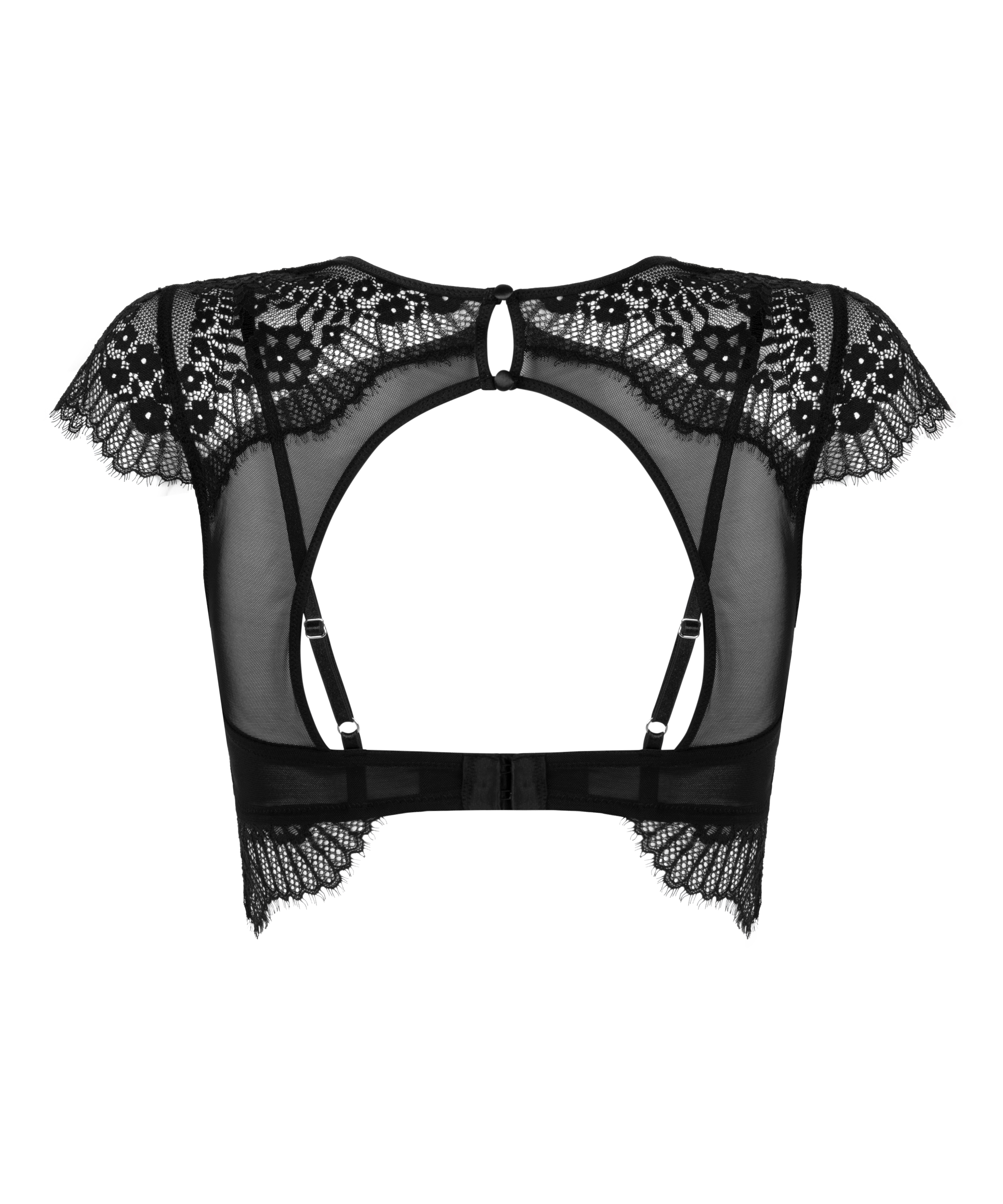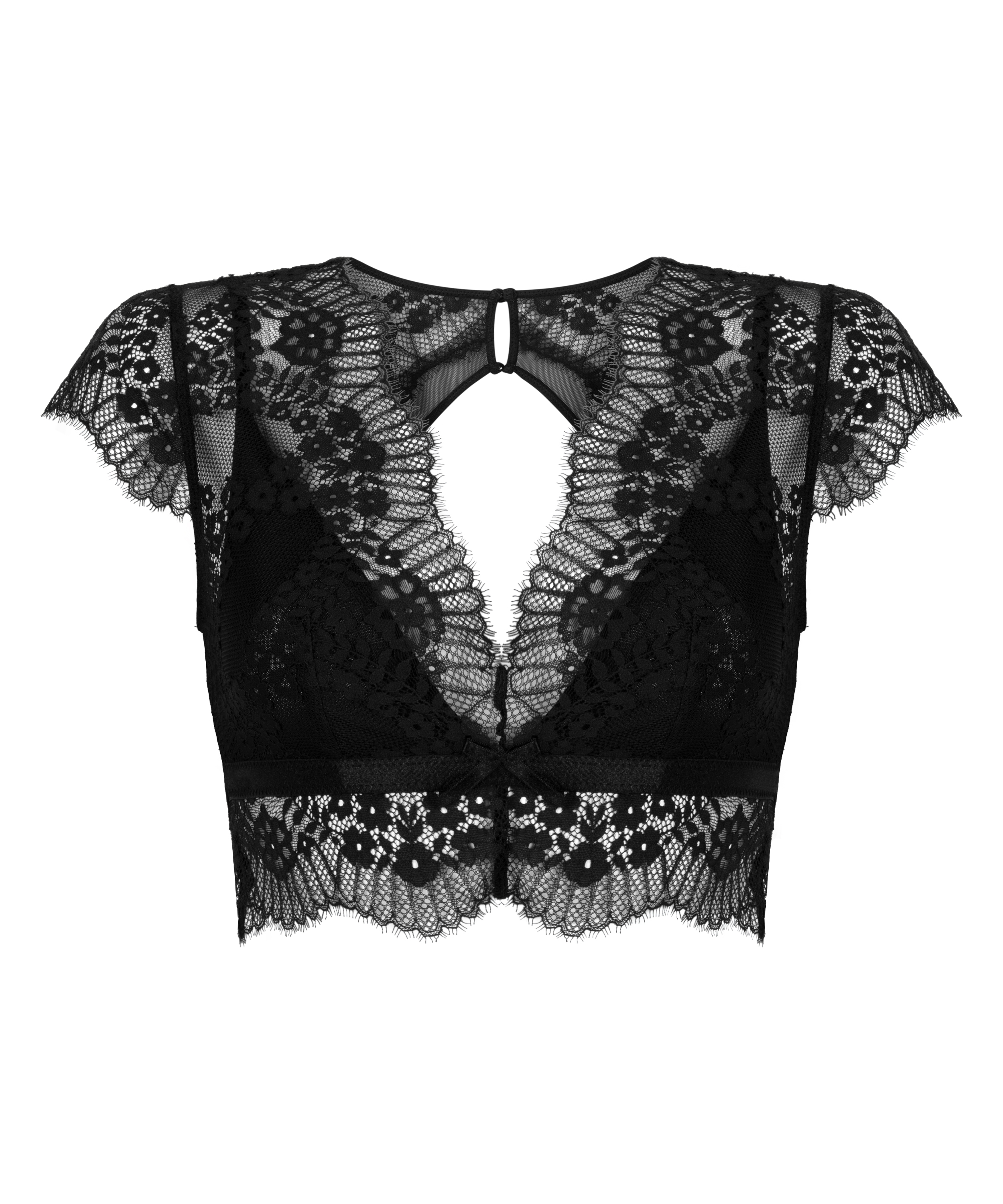 Føl deg sexy i denne bralette-toppen! Braletten består av blonder og har korte ermer, sexy, åpen rygg og satengsløyfer bak på kragen. Toppen er også perfekt for en kveld på byen!
