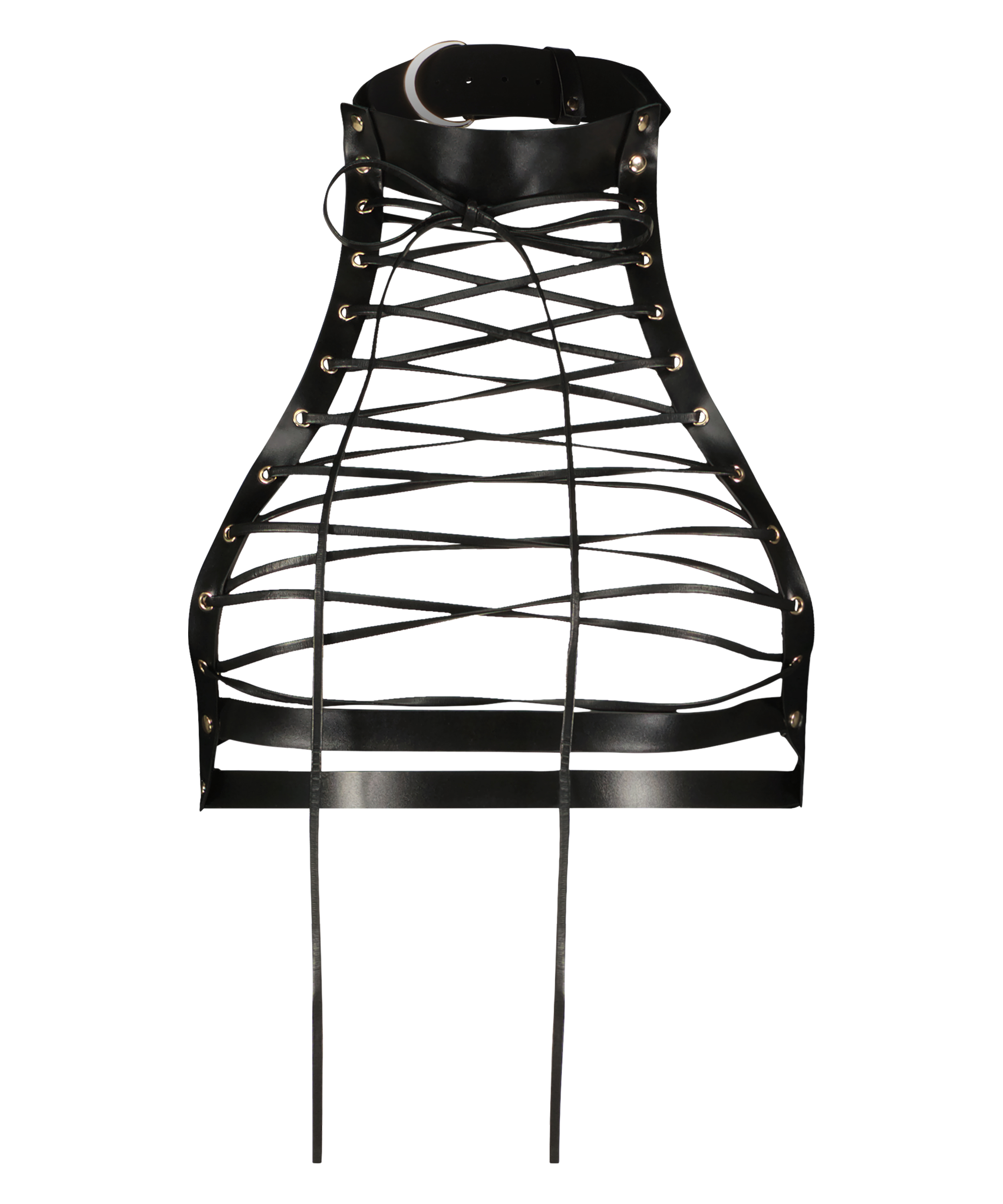 Vil du ta settet ditt til det neste nivået? Denne braletten i imitert skinn er perfekt for deg. Laget helt av strappy detaljer med justerbare stropper og metaldetaljer. Finn de matchende selene og fullfør settet ditt!