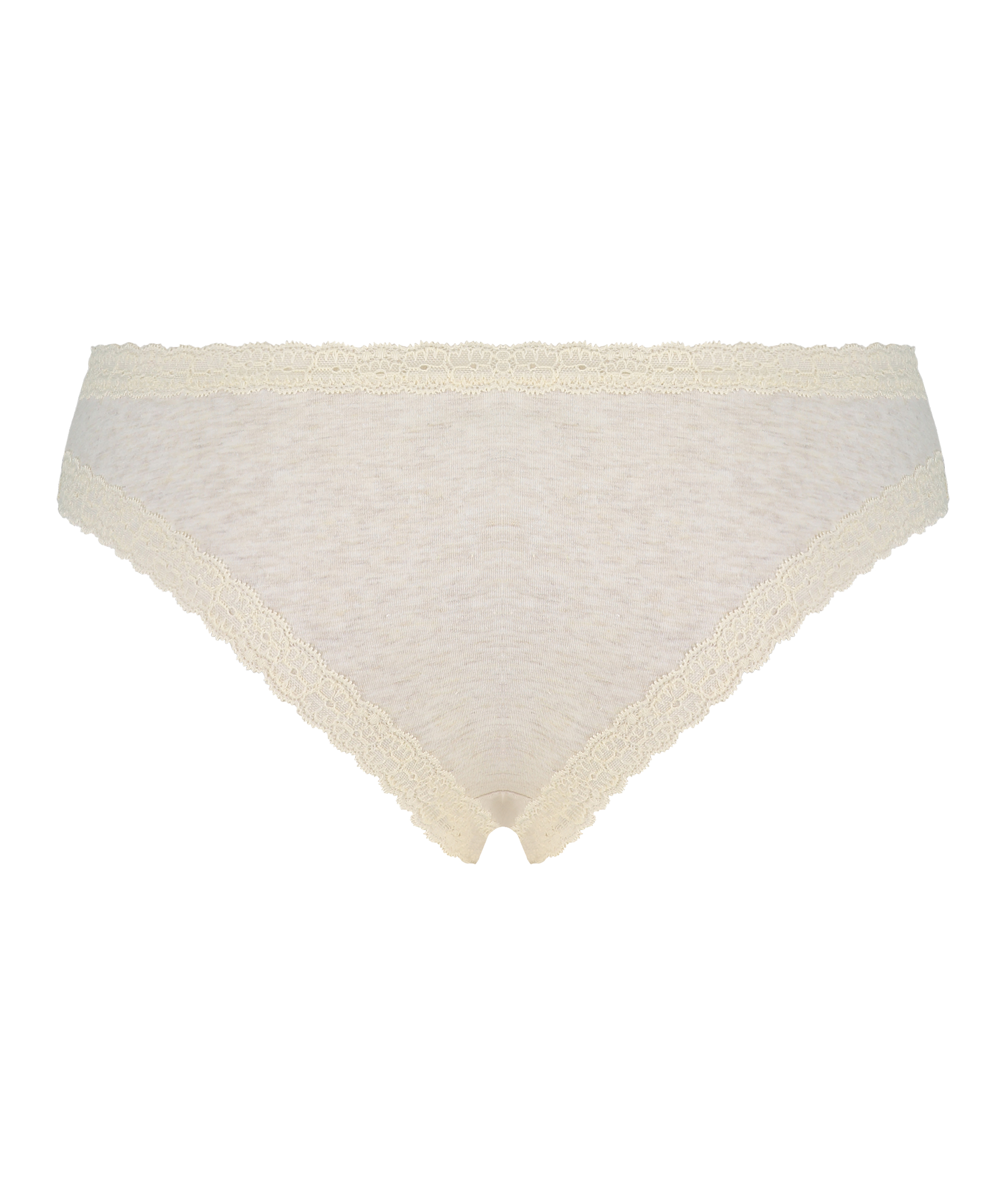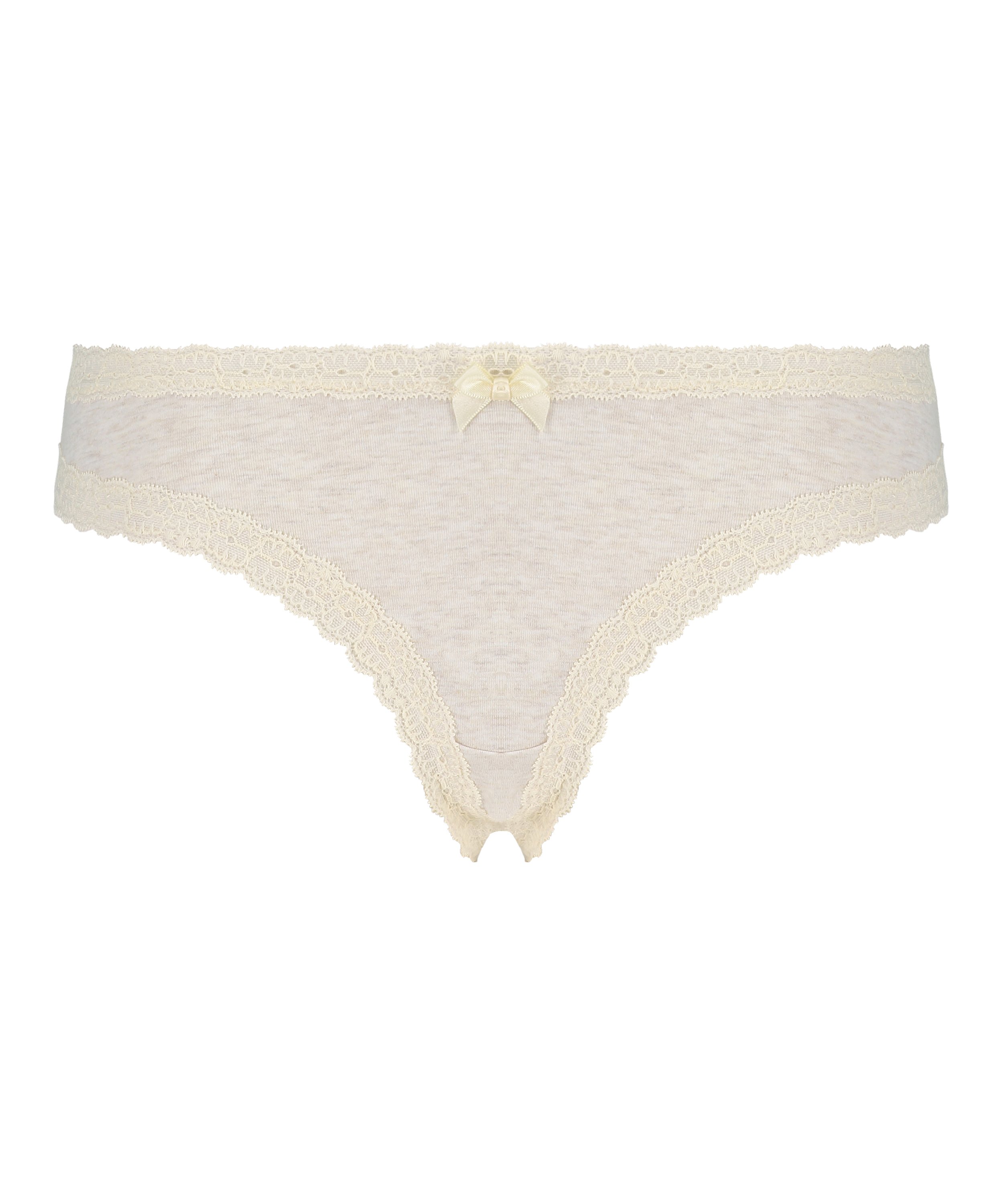 Denne brasilianske trusen er et ideelt tilskudd til din daglige garderobe. Den har en blondekant og en liten sløyfe.