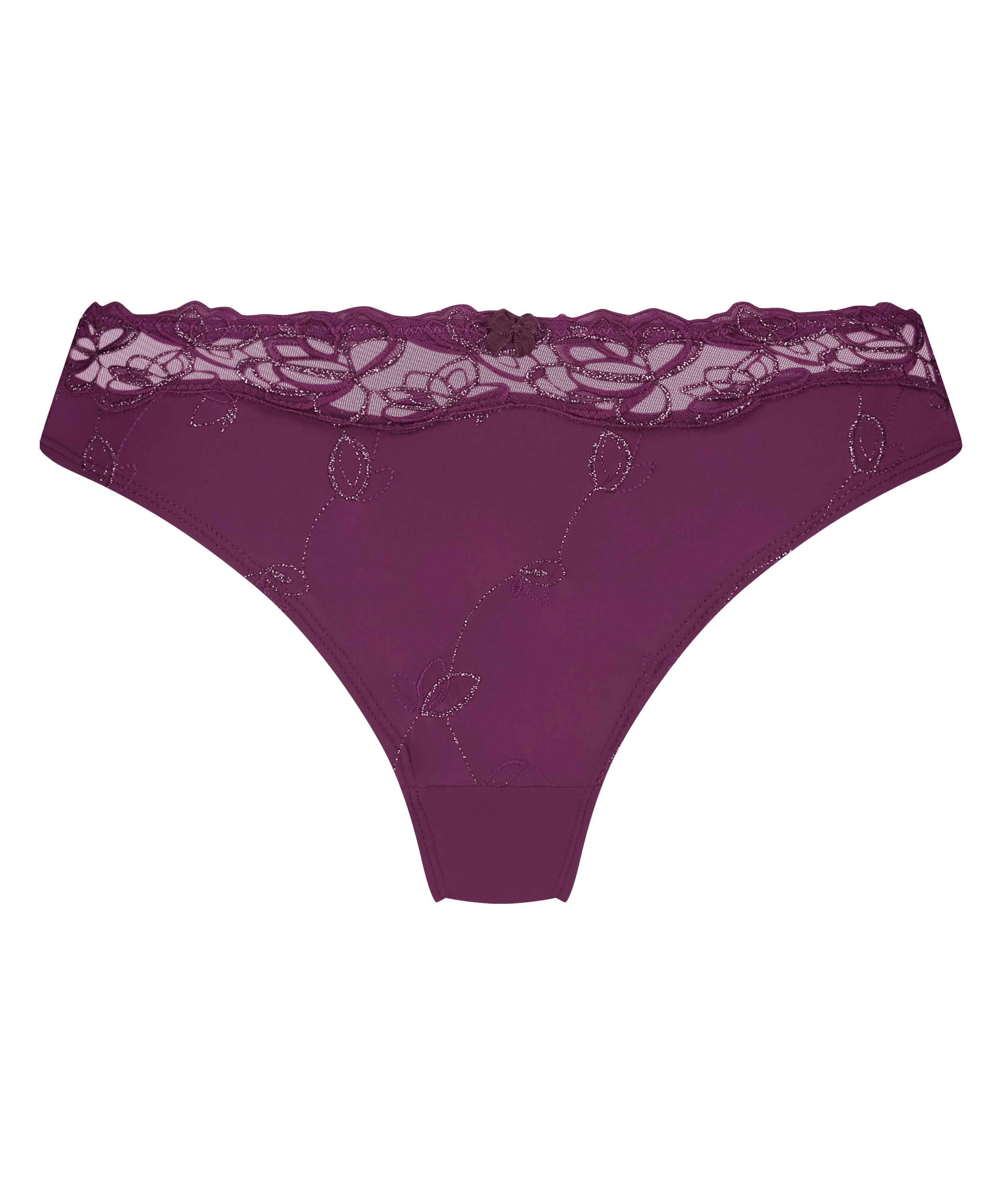 Hunkemöllers mest populære brazilian! Med semitransparente blondedetaljer øverst. Baksiden er laget av ugjennomsiktig stoff med en fin plissert detalj.
