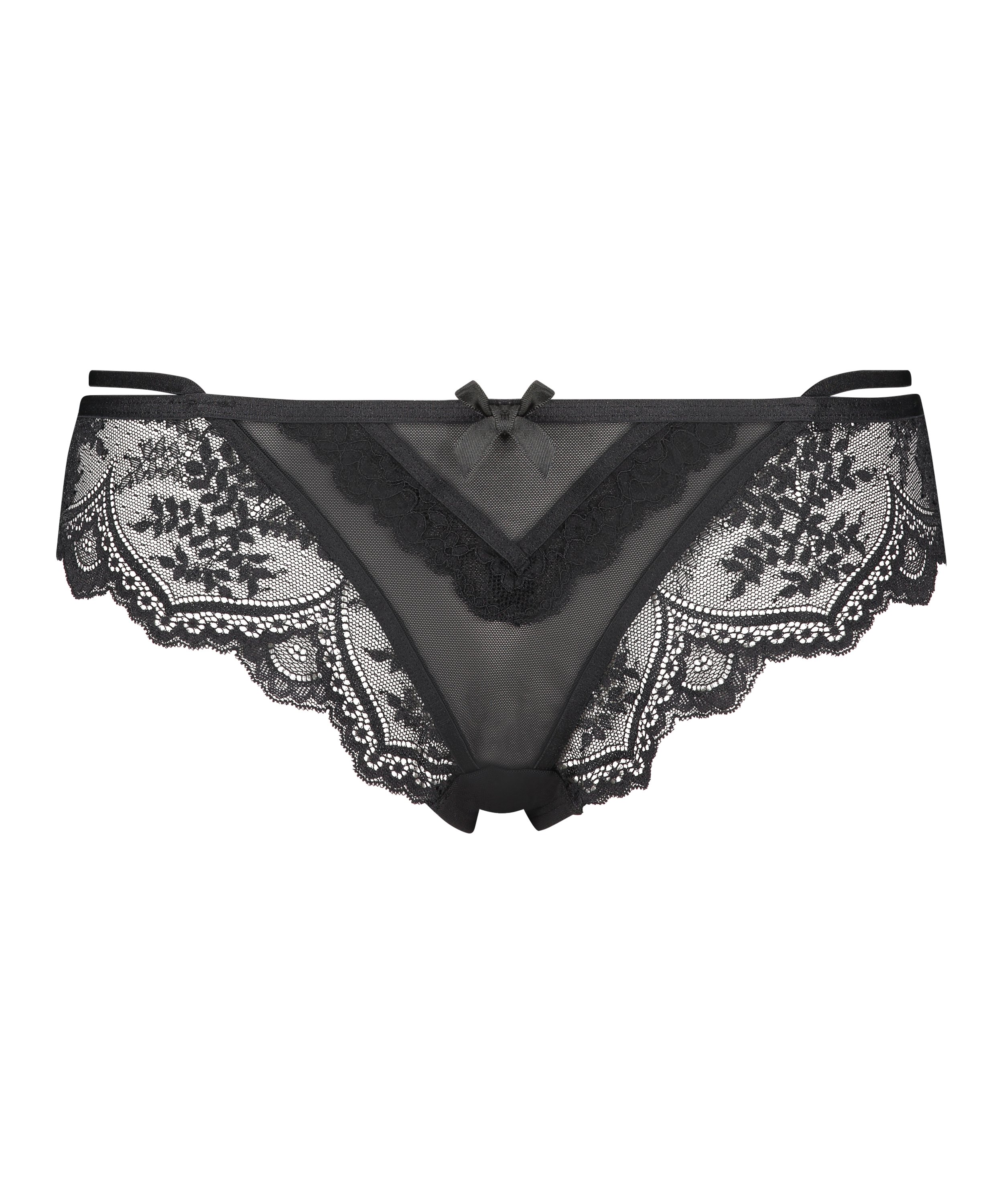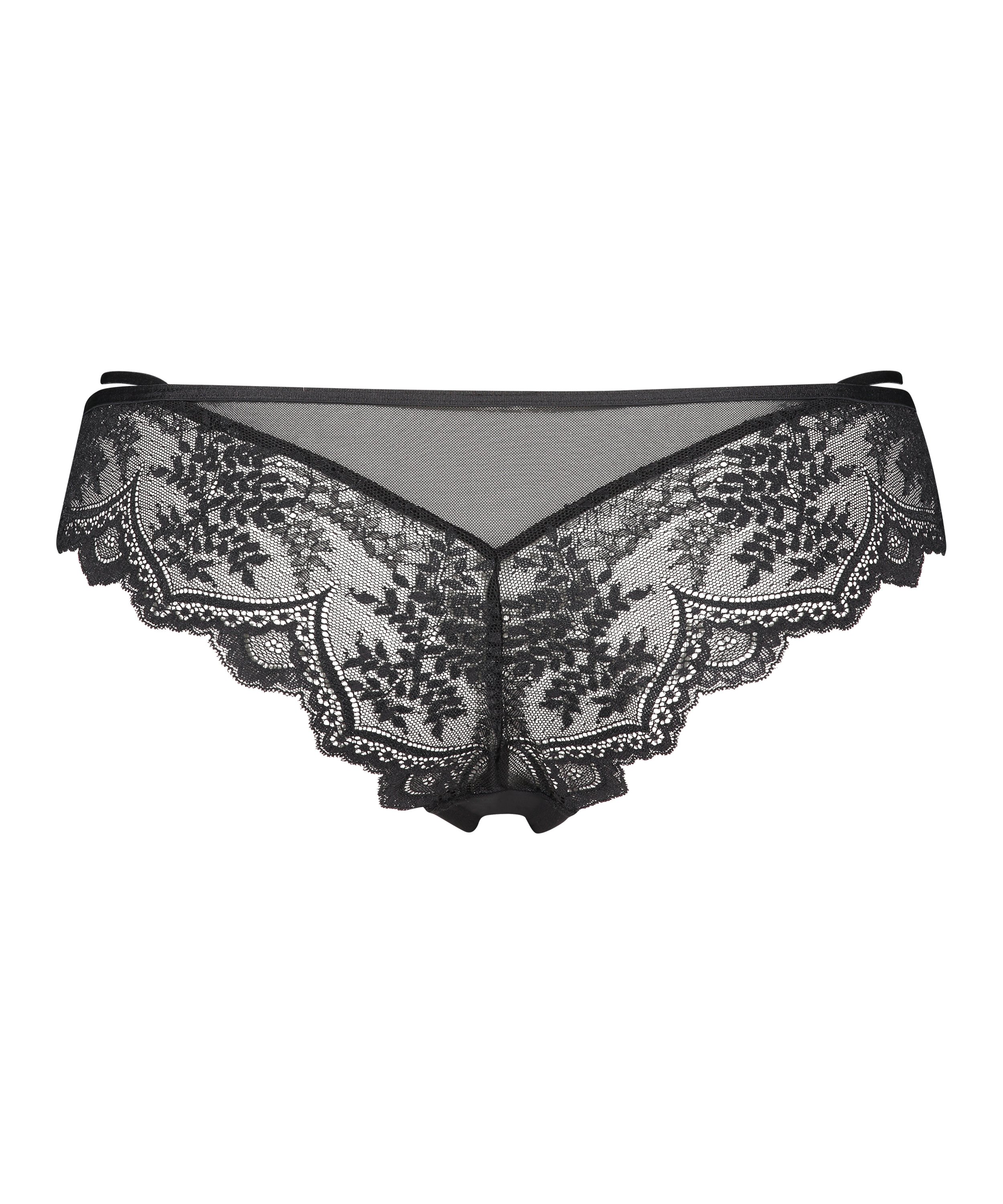 Denne brasilianske trusen har virkelig wow-effekten! Trusen er forseggjort med massevis av blonder, og foran er det en liten sløyfe. Kombiner med den matchende braletten eller BH-en for å gjøre settet ditt komplett.