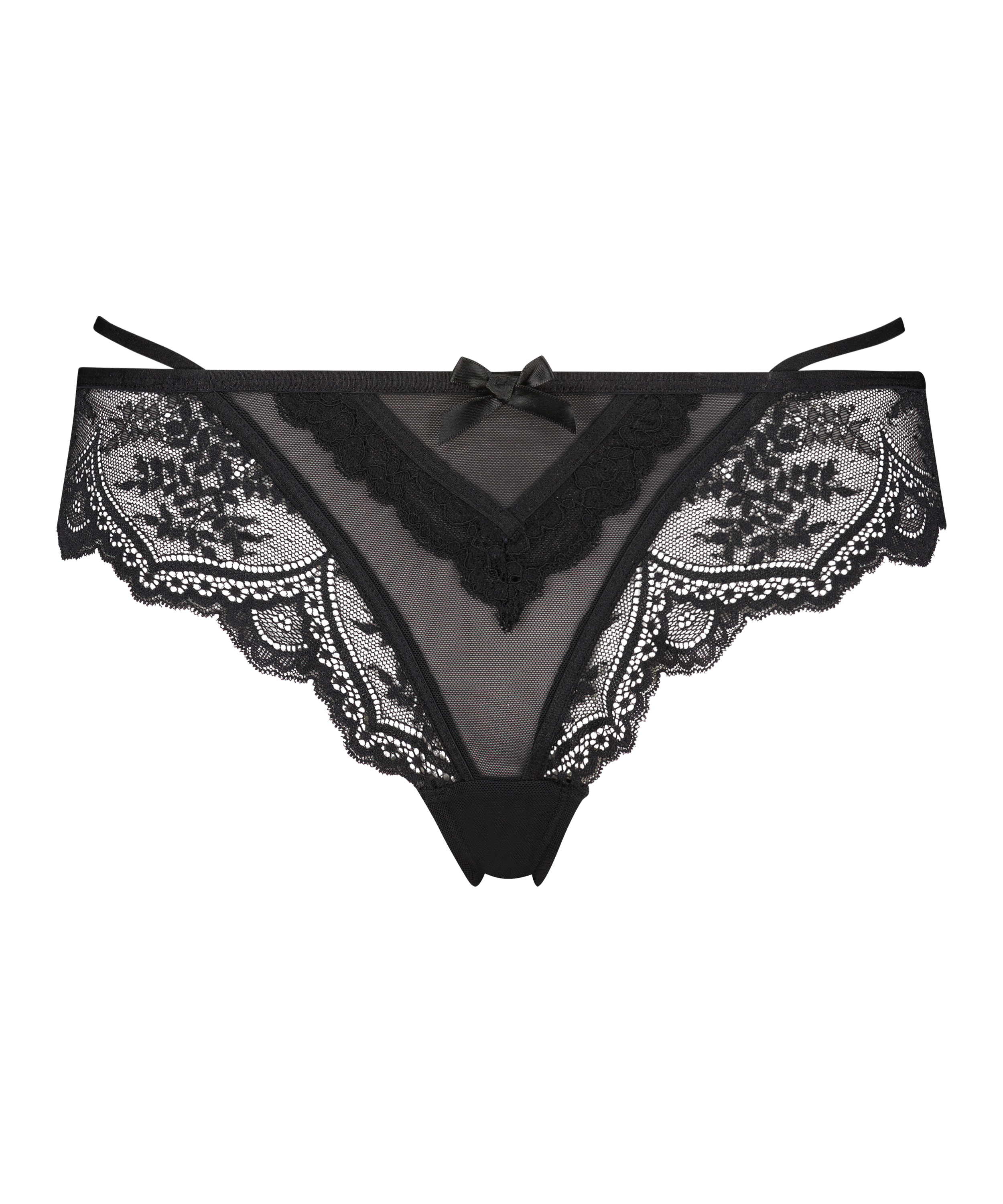 Denne brasilianske trusen har virkelig wow-effekten! Trusen er forseggjort med massevis av blonder, og foran er det en liten sløyfe. Kombiner med den matchende braletten eller BH-en for å gjøre settet ditt komplett.