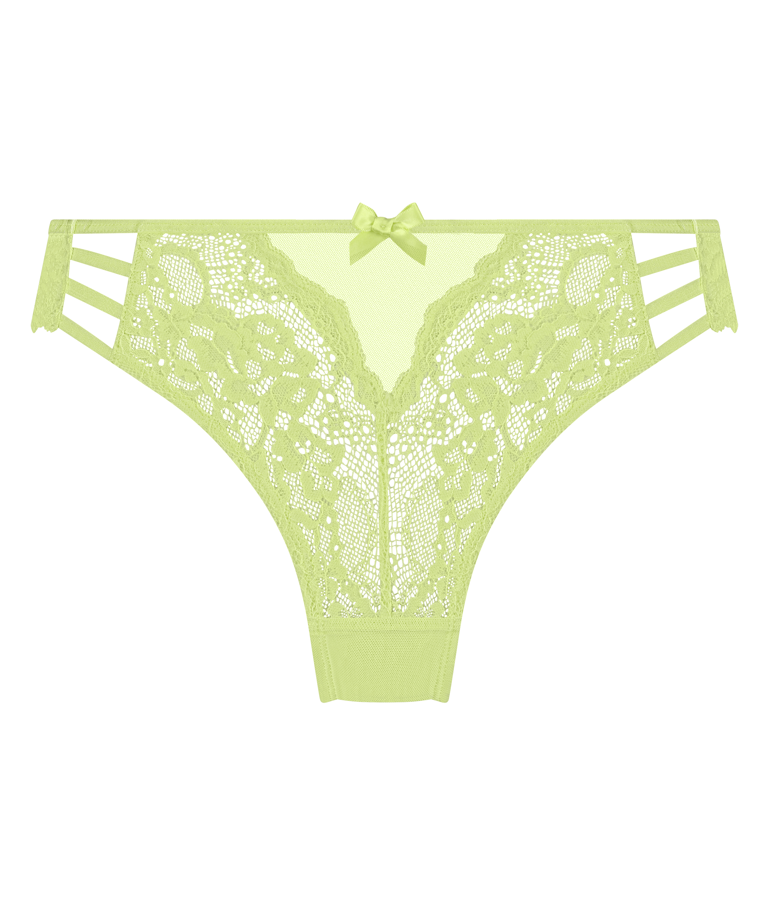 Denne brasilianske trusen er da superlekker? De strappy detaljene i kombinasjon med de nydelige blondene gjør looken din fullkommen! Kombiner med favoritt-BH-en din i samme farge.