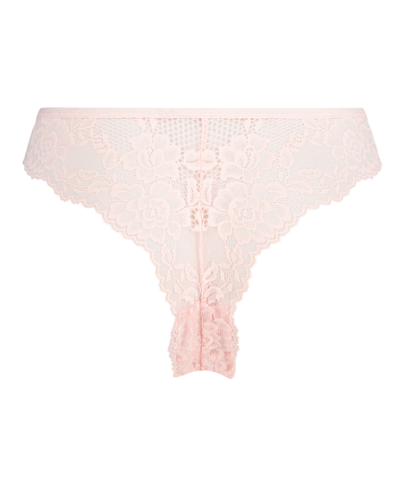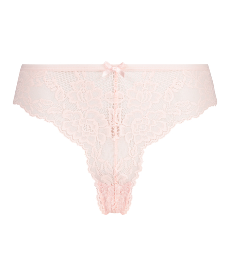 Denne halvt gjennomsiktige trusen har en mengde blonder. Den lille sløyfen foran er en pen avsluttende detalj.