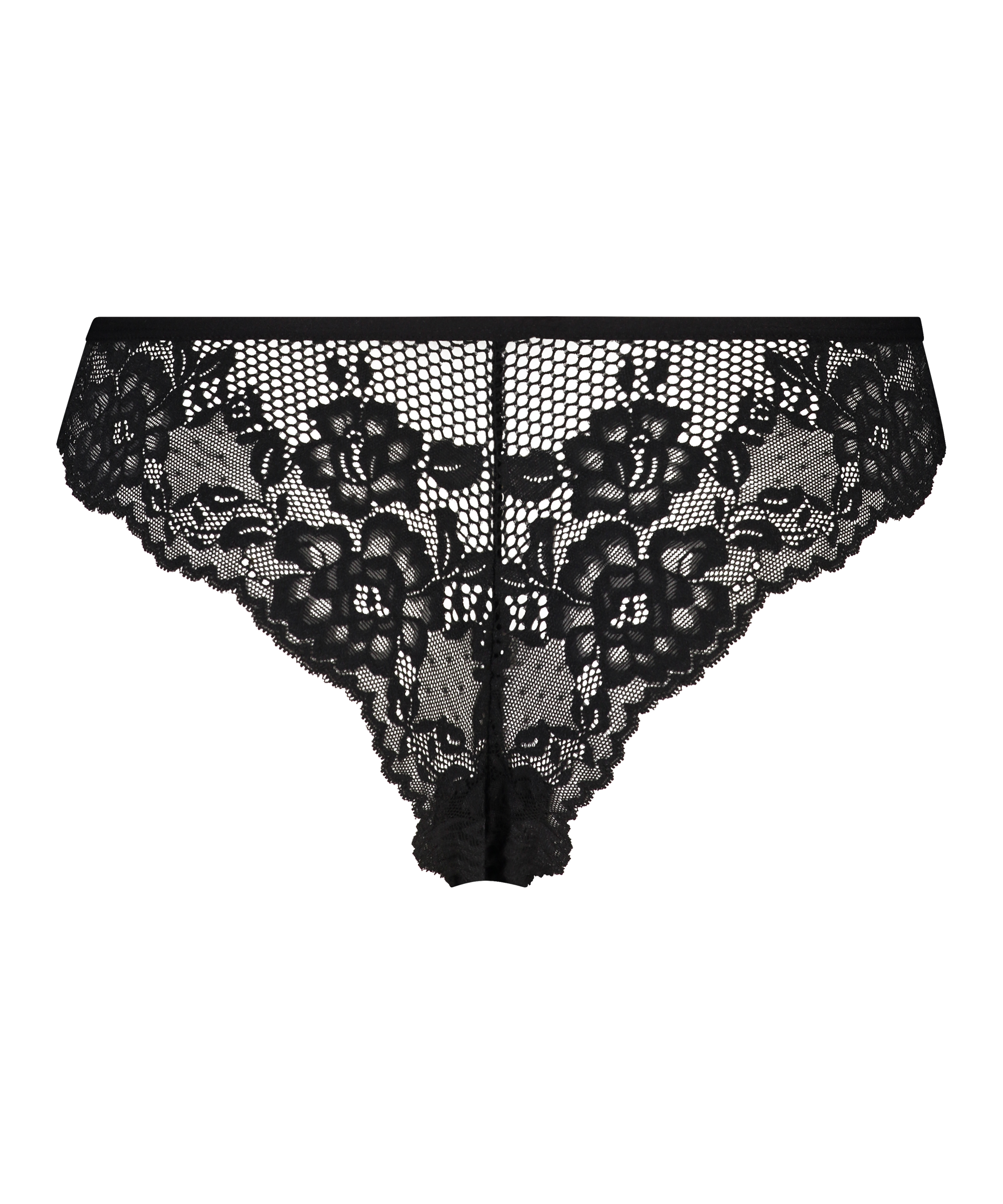Denne halvt gjennomsiktige trusen har en mengde blonder. Den lille sløyfen foran er en pen avsluttende detalj.