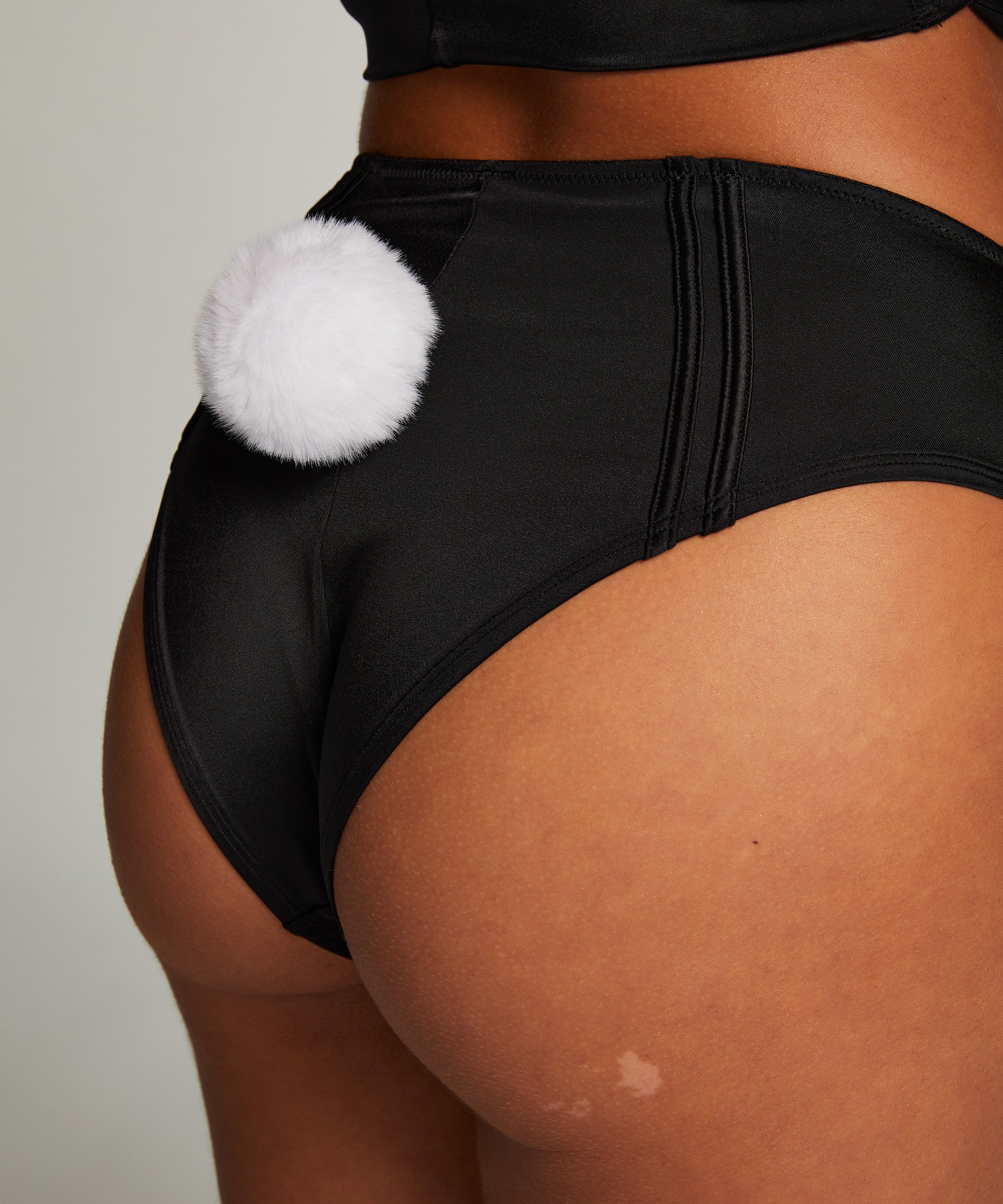 Vær leken med denne kaninbrasilianeren! Med dekorative knapper i fronten og kaninhale bak. Vær kreativ og kle deg opp! Inngår i Private bunny-settet.