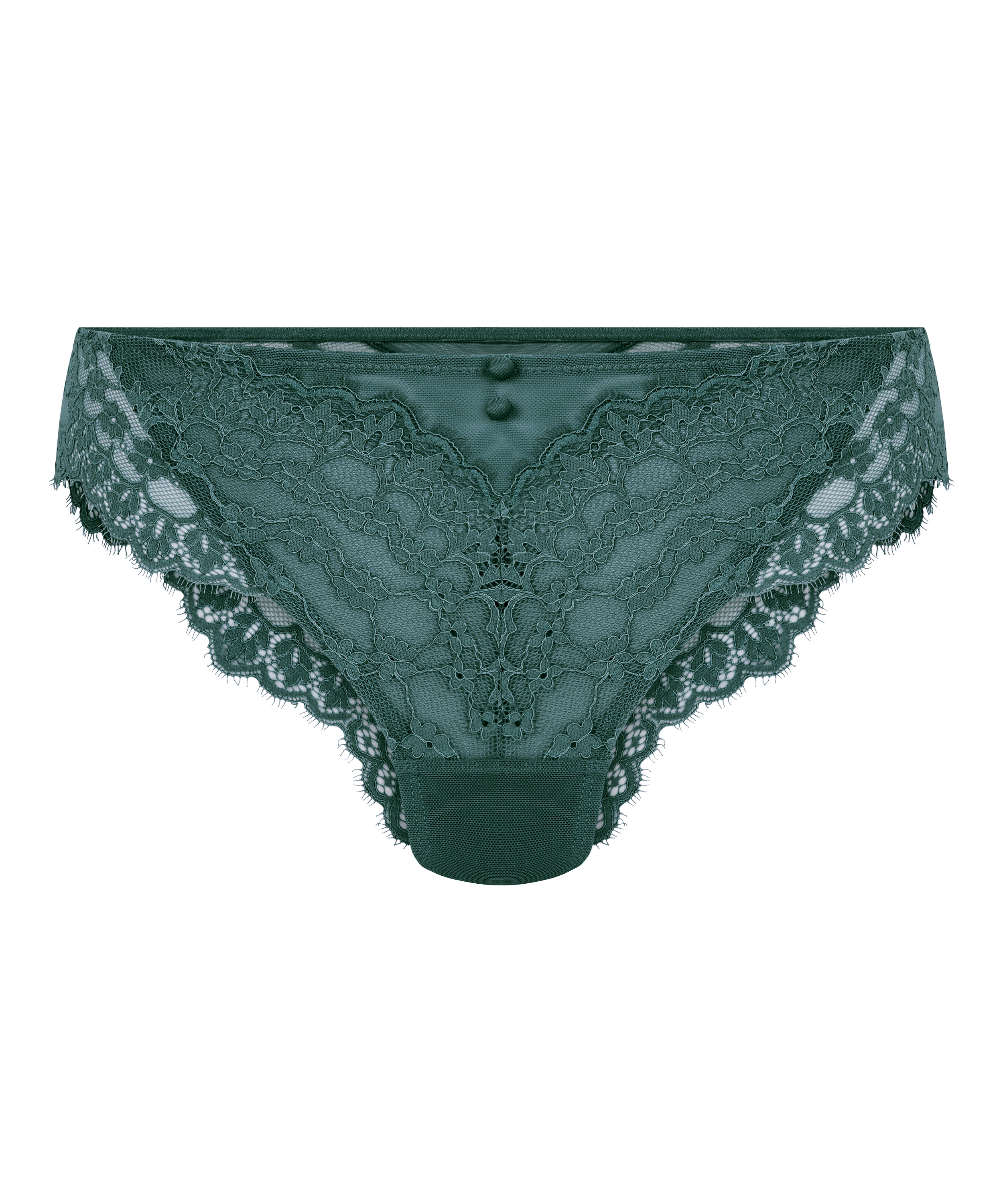 Denne brasilianske trusen er superlekker! Den har masse blonder og i tillegg mesh bak. Kombiner med matchende artikler og oppnå en gjennomført look!