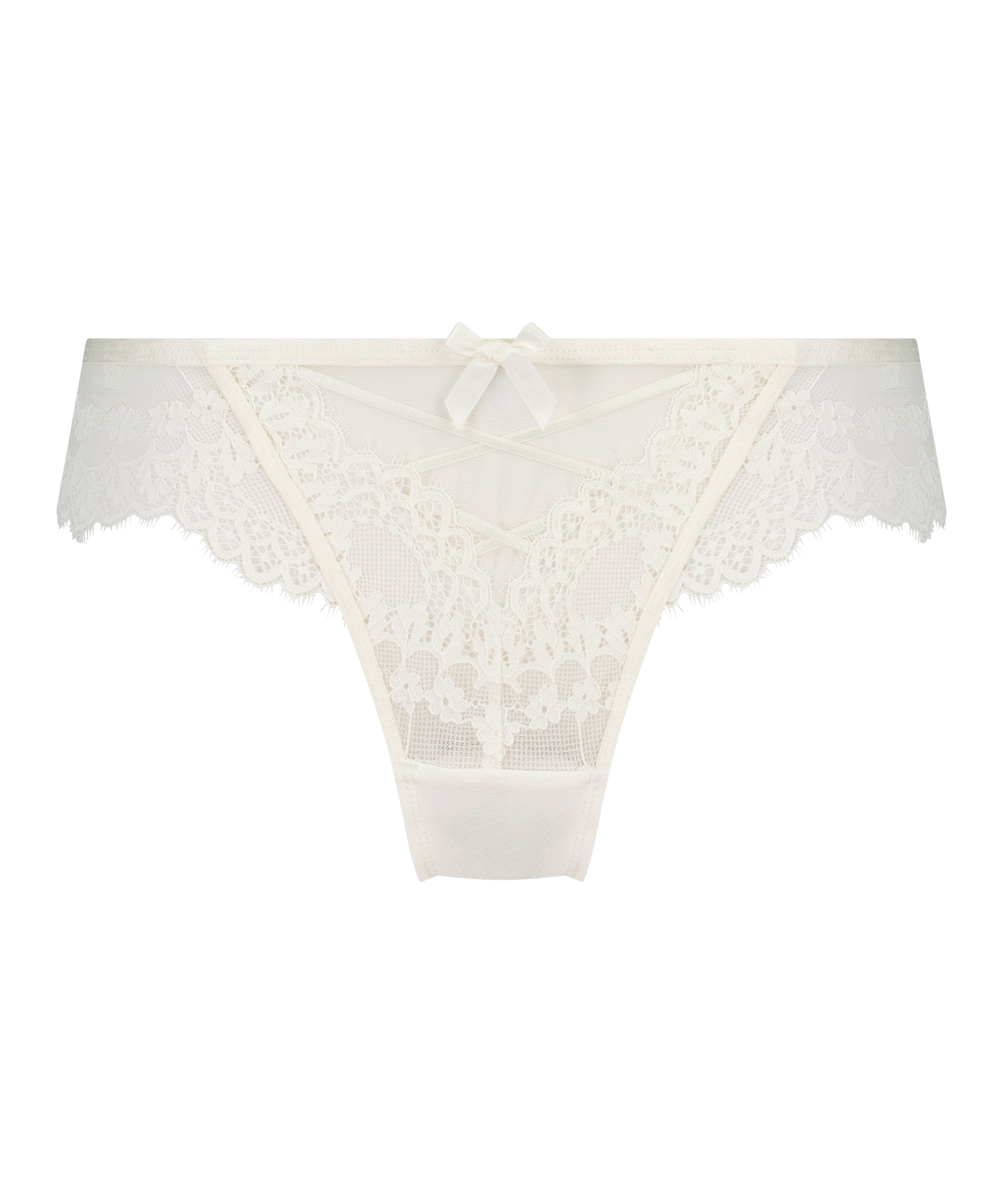 Denne brasilianske trusen er superlekker! Den har masse blonder og i tillegg mesh bak. Kombiner med matchende artikler og oppnå en gjennomført look!