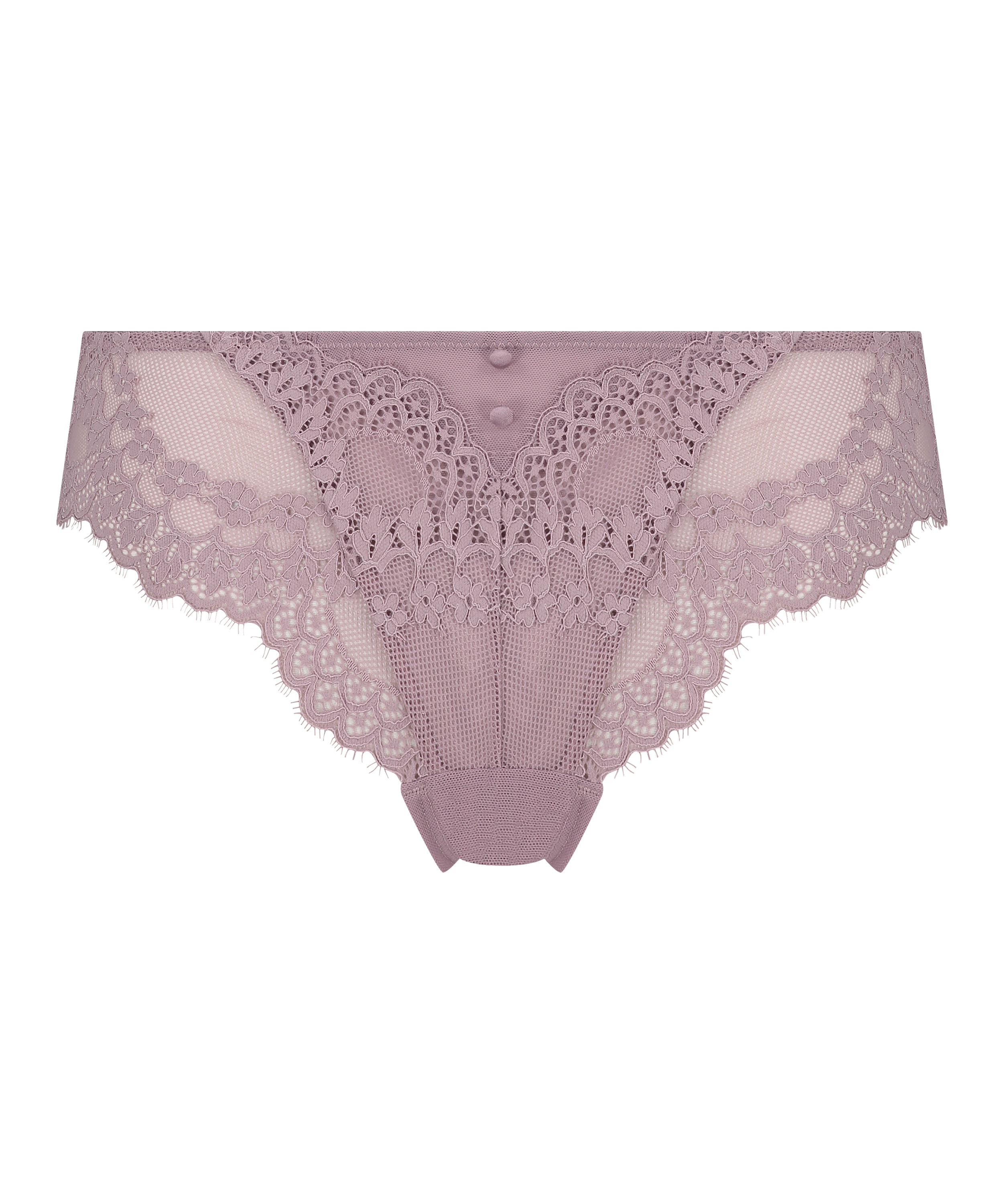 Denne brasilianske trusen er superlekker! Den har masse blonder og i tillegg mesh bak. Kombiner med matchende artikler og oppnå en gjennomført look!