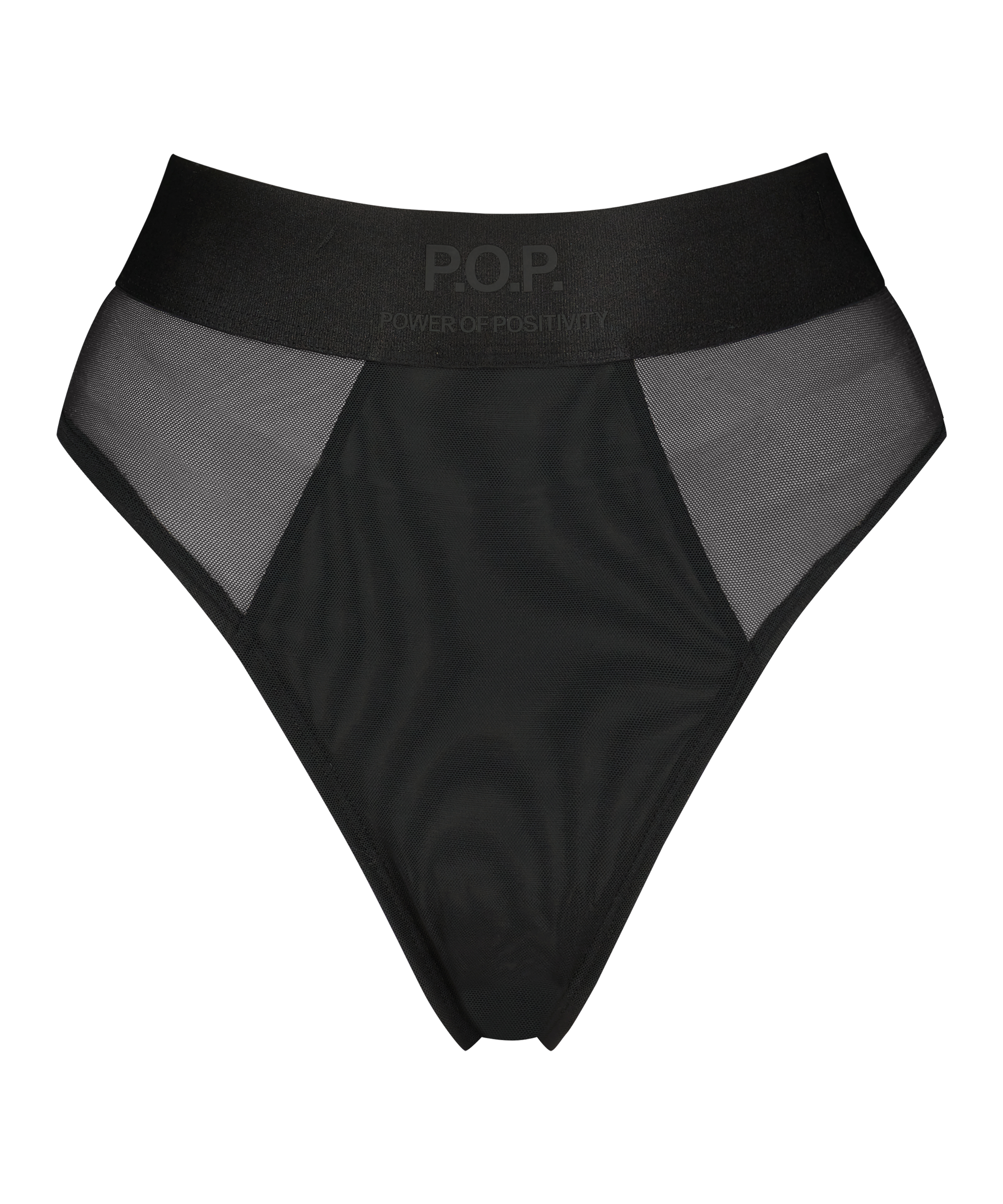 Denne sexy, brasilianske trusen har fine paneldetaljer i mesh, noe som gir en see-through-effekt. Trusen har et luksuriøst midjebånd med satengglans med logo som er så behagelig at du glemmer at du har den på. Kombiner denne flotte brasilianske trusen med den matchende braletten! En del av vår P.O.P "Power Of Positivity"-kolleksjon. En inspirerende og energisk "think positive"-holdning, denne kolleksjonen omfavner egenkjærlighet, mangfold og en bevisst livsstil.