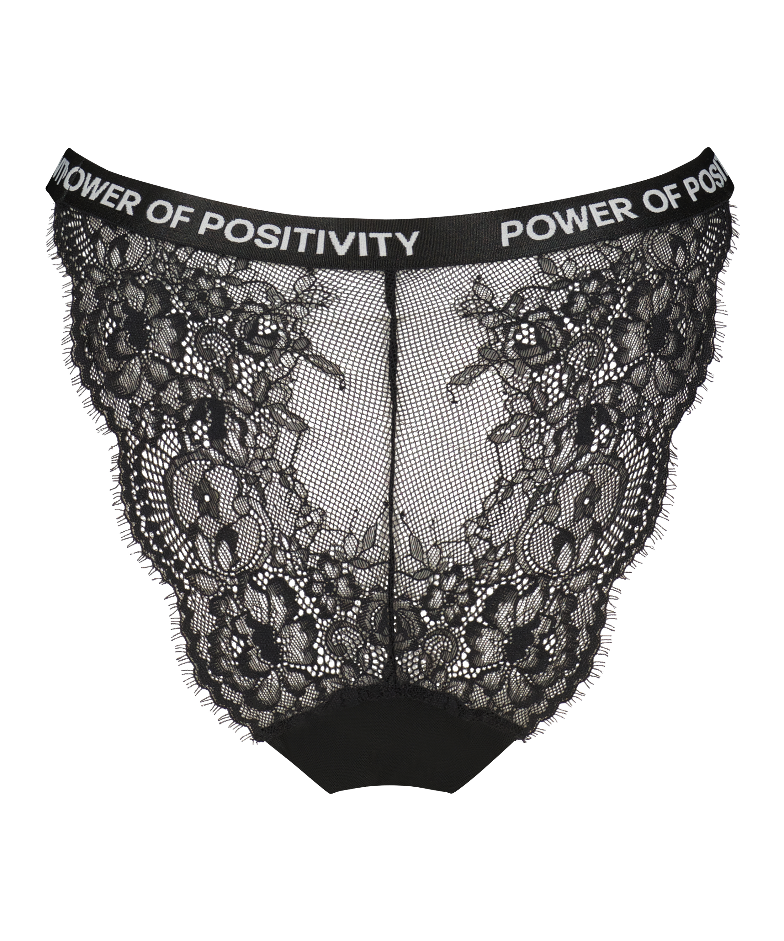 Føl deg fabelaktig i denne praktfulle brasilianske trusen! Den er laget av blonder for en leken look. Kombiner med matchende artikler og du har et komplett sett! En del av P.O.P-kolleksjonen vår - Power of Positivity. En inspirerende og energisk "tenk positivt"-holdning, P.O.P. Power Of Positivity omfavner selvkjærlighet, diversitet og en bevisst livsstil.