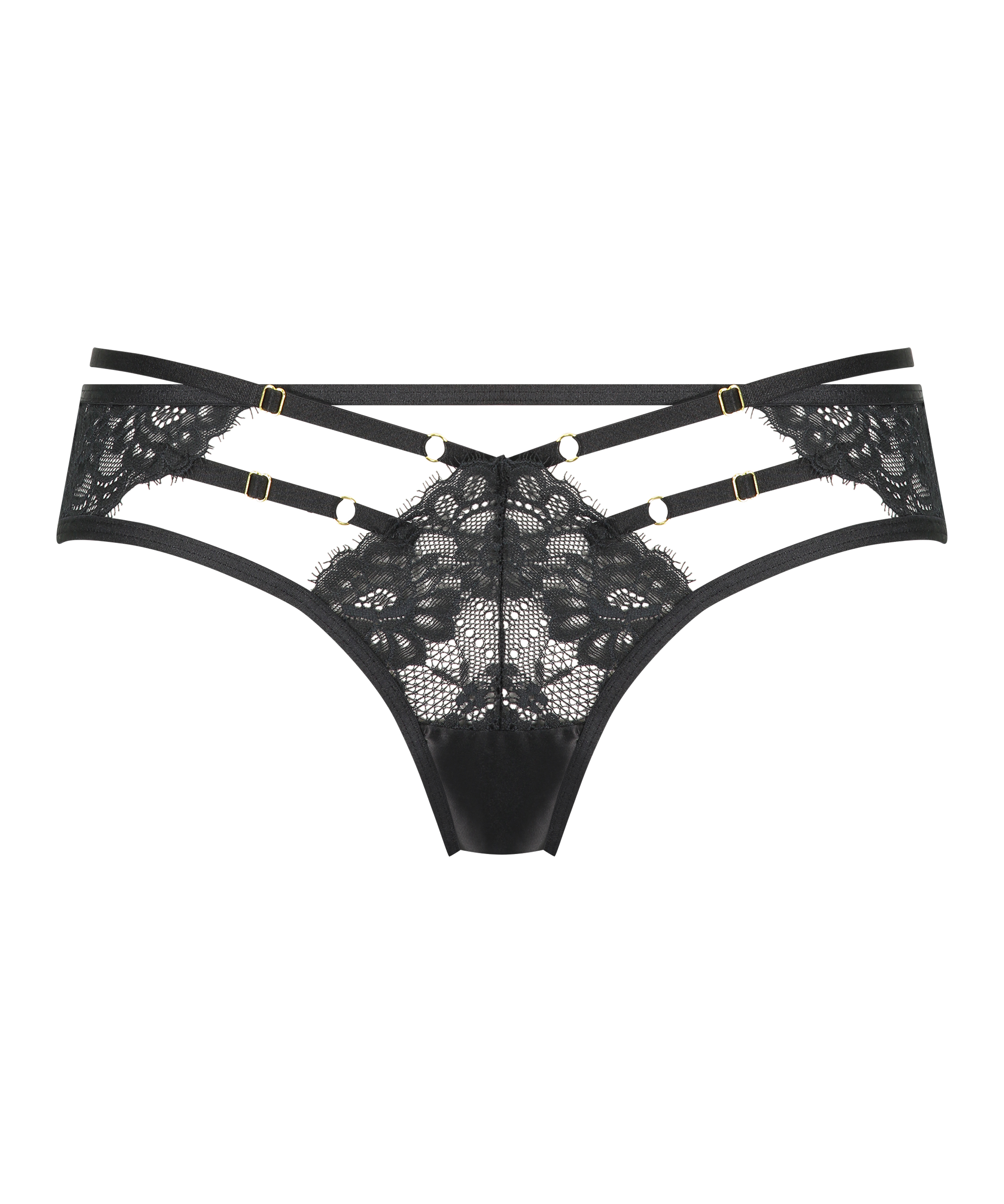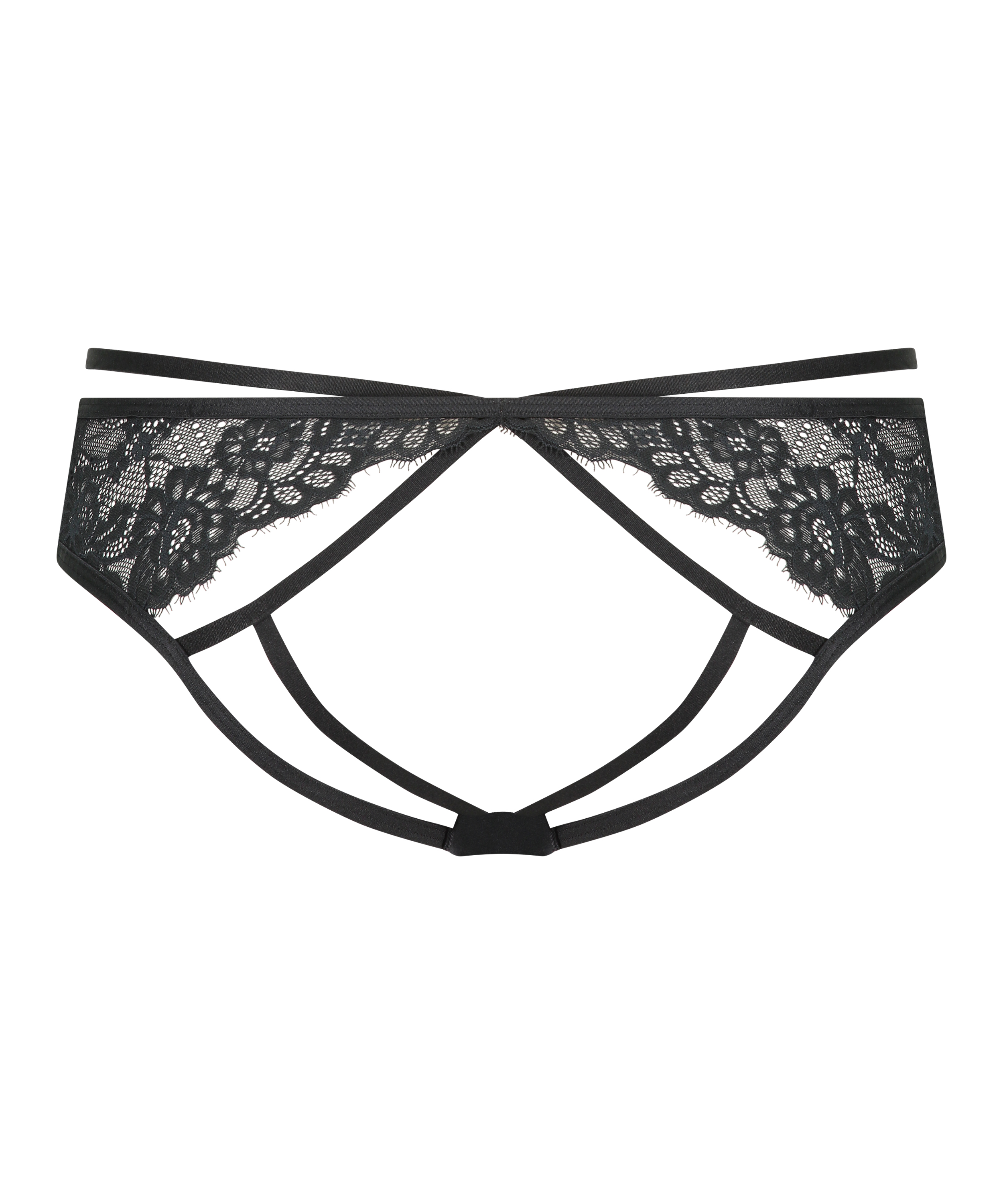 Denne sexy trusen er perfekt for en spennende natt! Den brasilianske trusen har blonder og en åpning bak. Kombiner med våre matchende artikler. En del av vår Private-kolleksjon.
