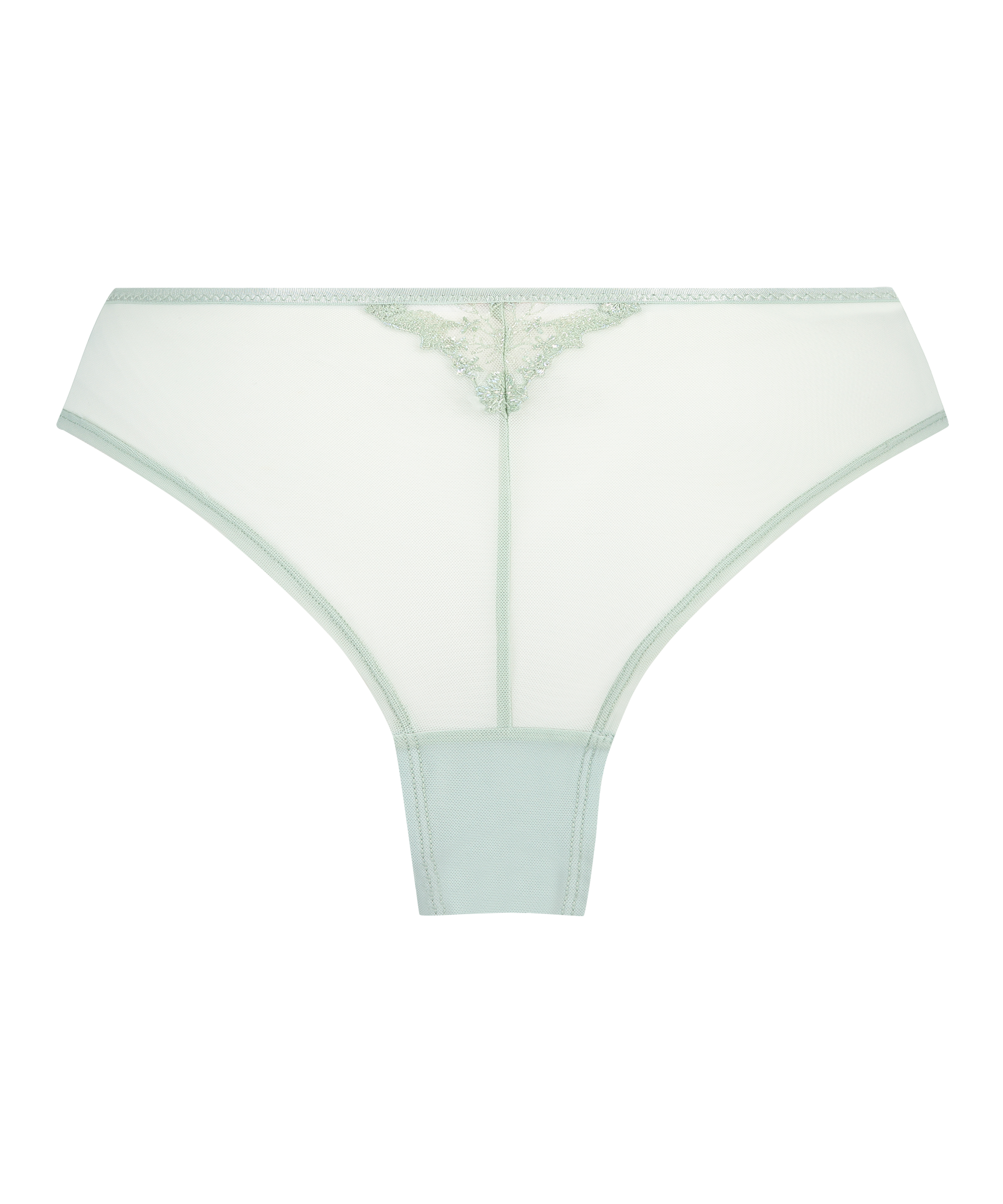 Denne brasilianske trusen er superlekker! Den har masse blonder og i tillegg mesh bak. Kombiner med matchende artikler og oppnå en gjennomført look!