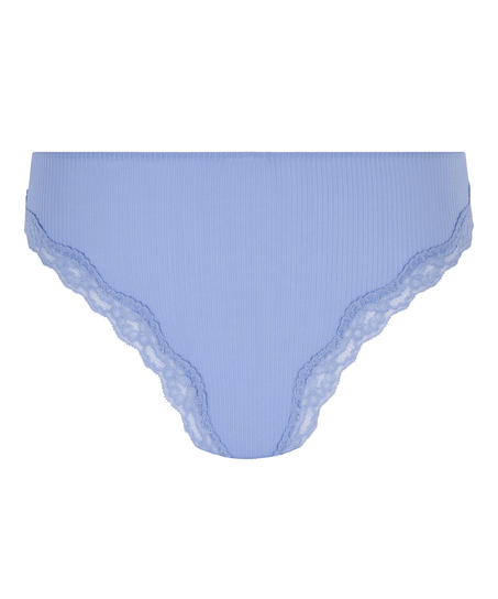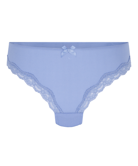 Denne brasilianske trusen er et må-ha! Den er laget av et ribbestoff og er forsynt med en blondekant. Foran er g-strengen utstyrt med en liten sløyfe. Gjør settet ditt komplett med den matchende BH-en.