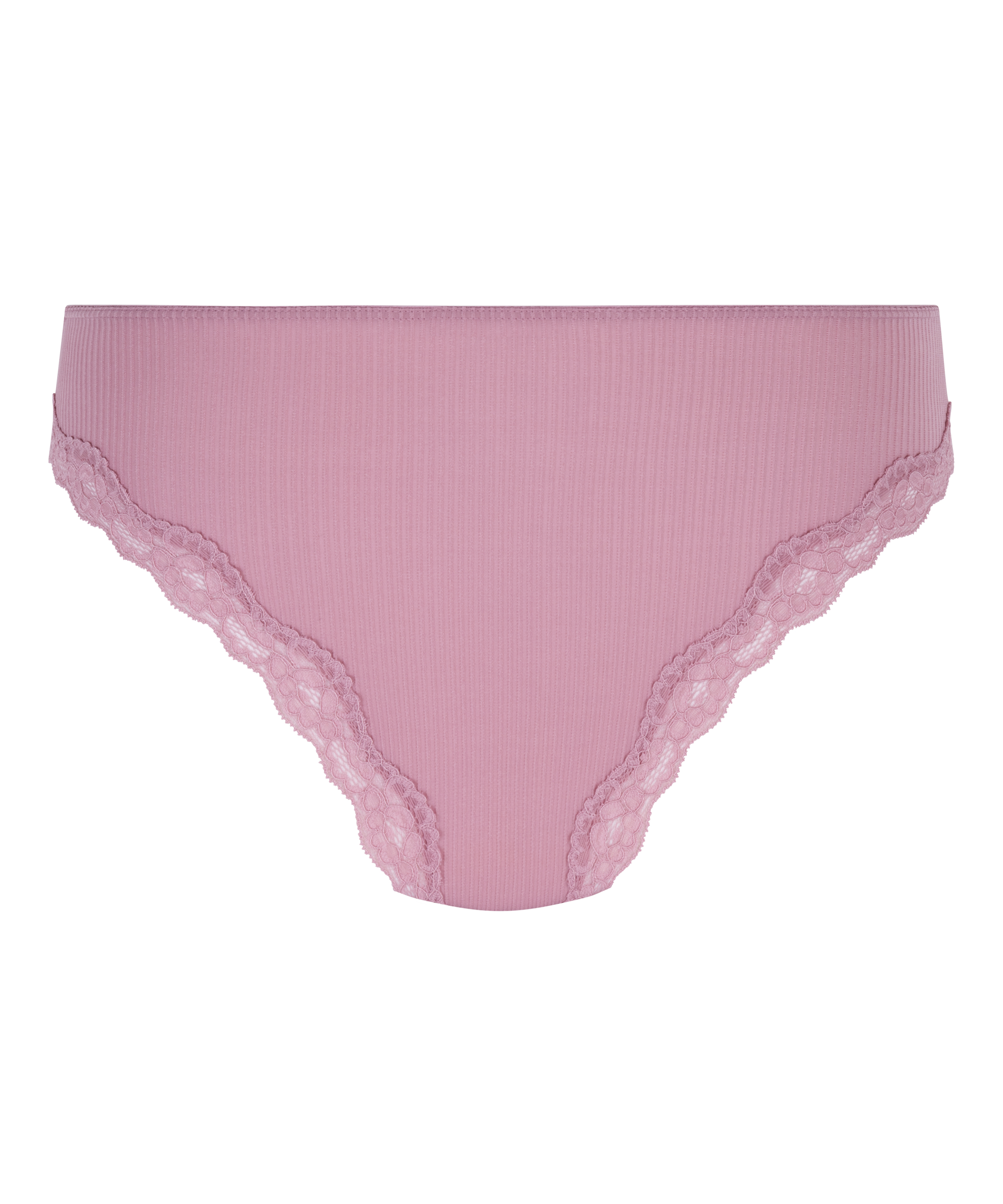 Denne brasilianske trusen er et må-ha! Den er laget av et ribbestoff og er forsynt med en blondekant. Foran er g-strengen utstyrt med en liten sløyfe. Gjør settet ditt komplett med den matchende BH-en.