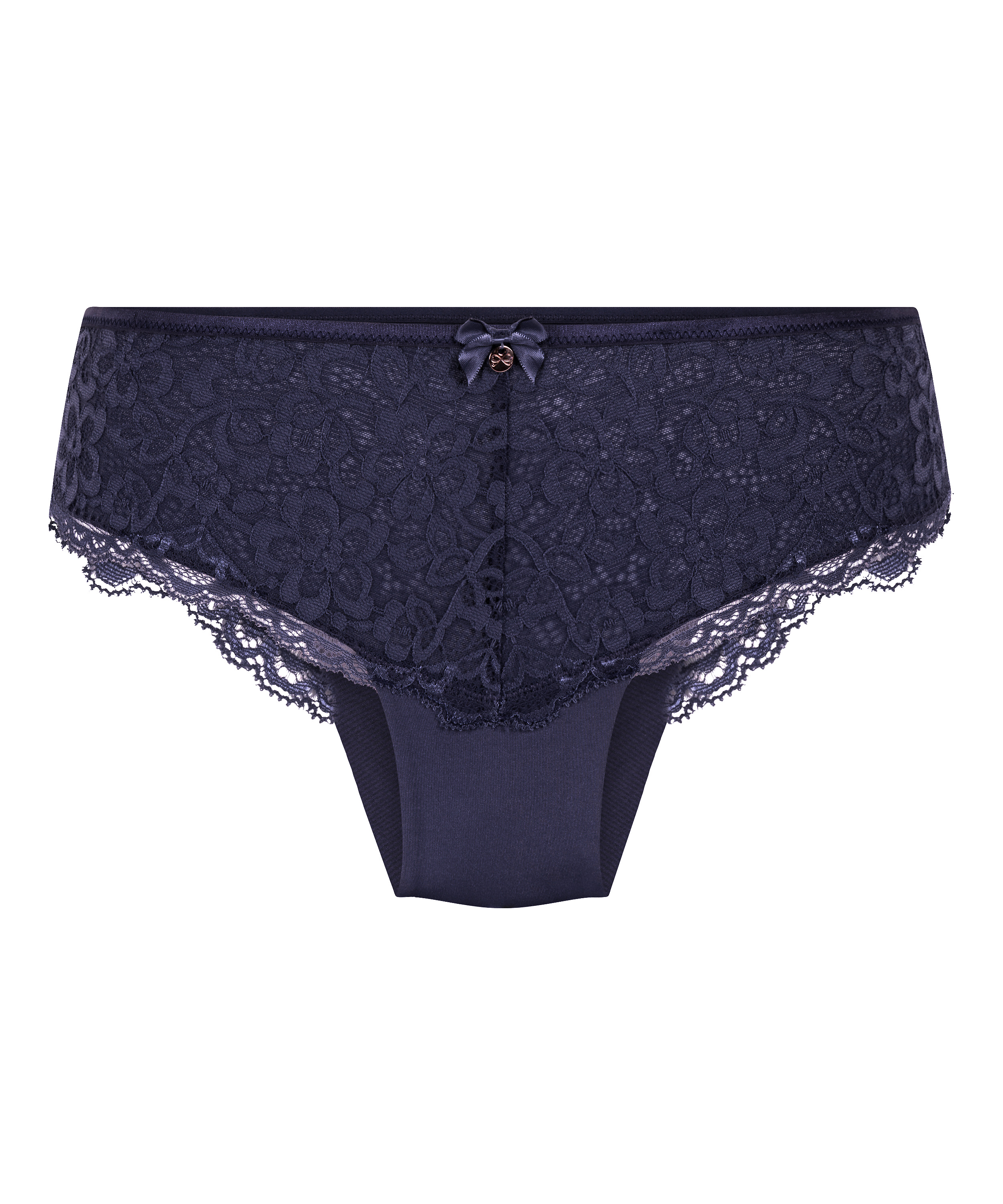Disse brasilianske trusene er dekket med blonder for et supersexy utseende. En liten sløyfe i midten gir den siste finishen. Kombiner med den matchende bh-en for en komplett look.