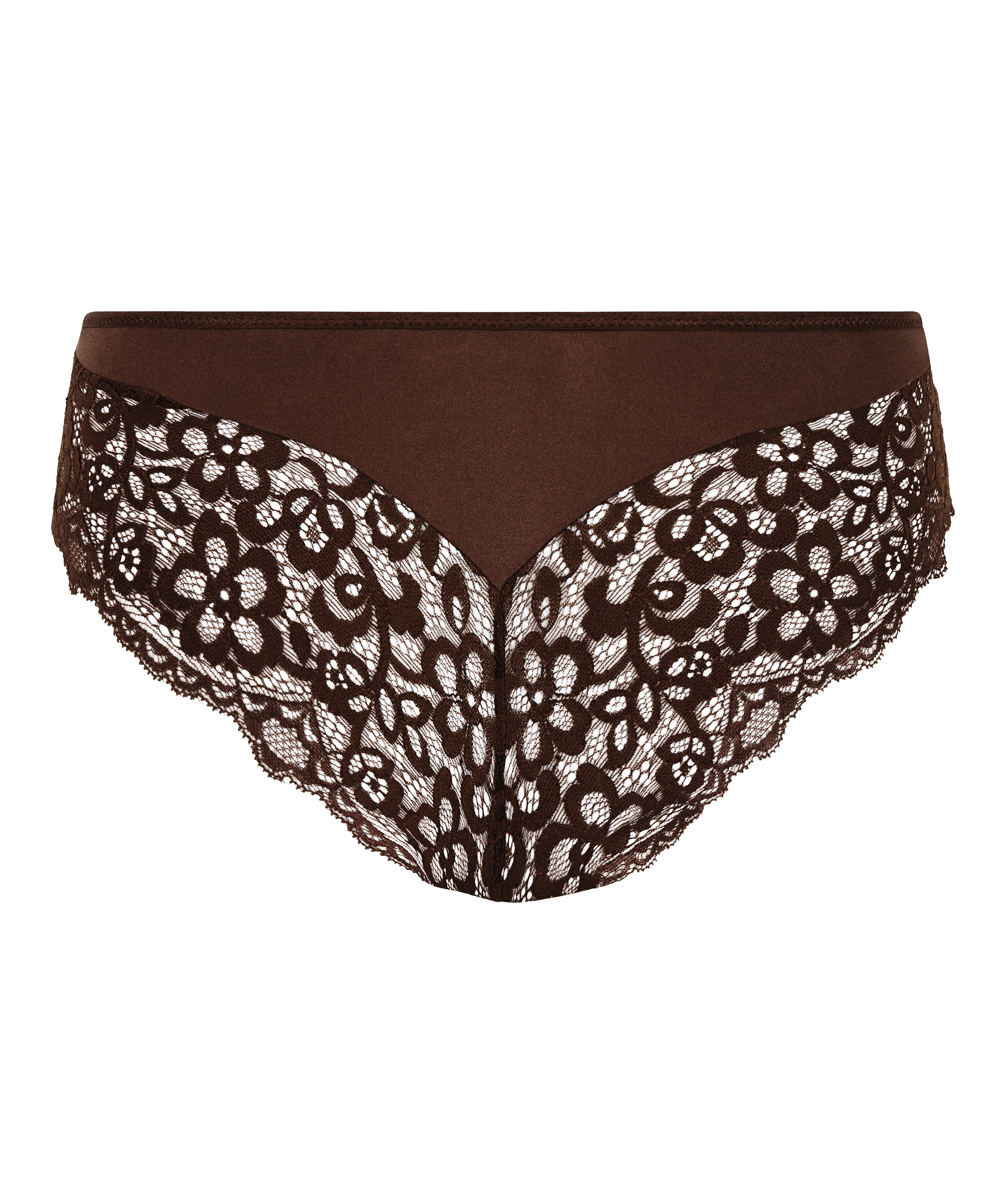 Disse brasilianske trusene er dekket med blonder for et supersexy utseende. En liten sløyfe i midten gir den siste finishen. Kombiner med den matchende bh-en for en komplett look.