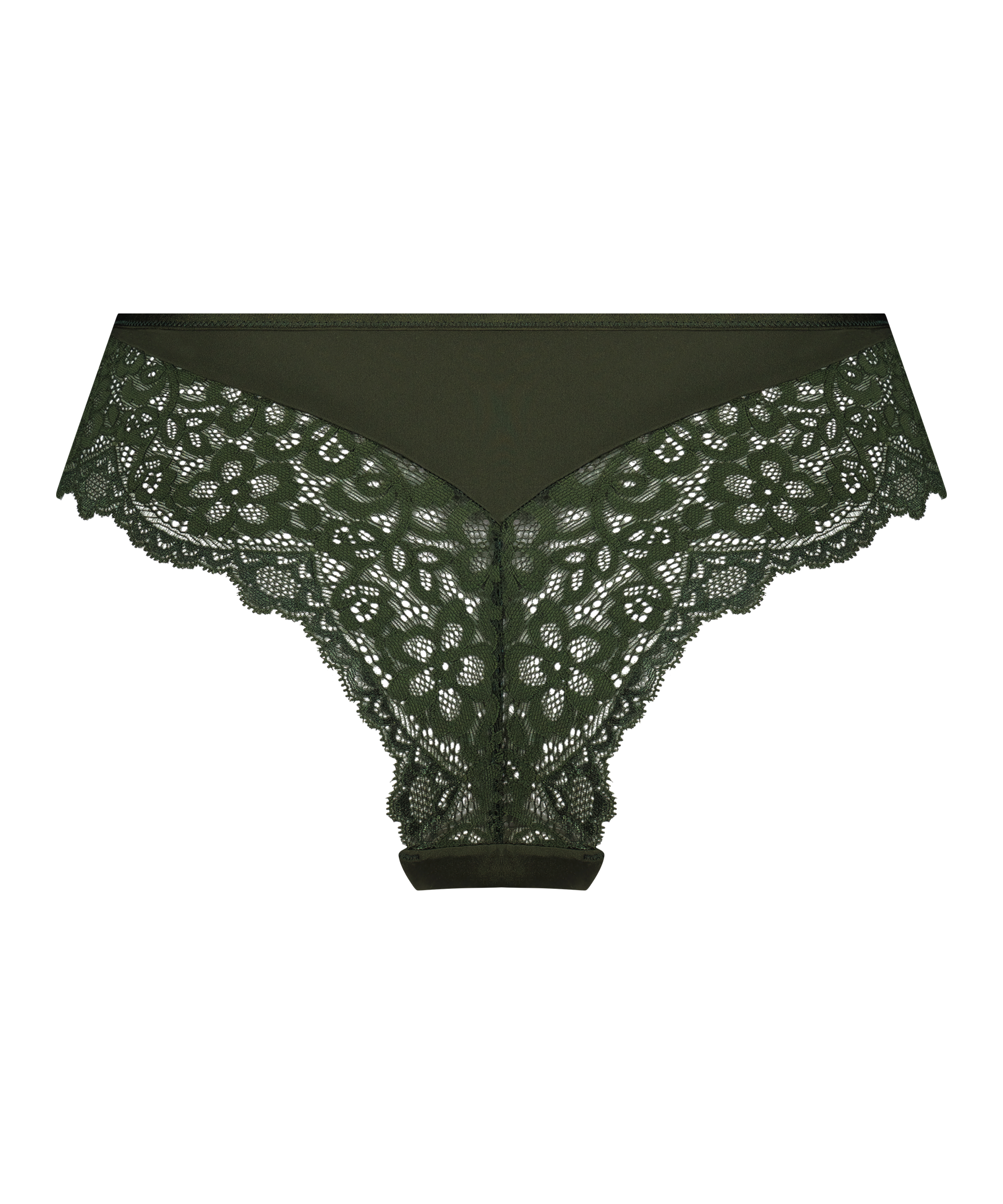Disse brasilianske trusene er dekket med blonder for et supersexy utseende. En liten sløyfe i midten gir den siste finishen. Kombiner med den matchende bh-en for en komplett look.