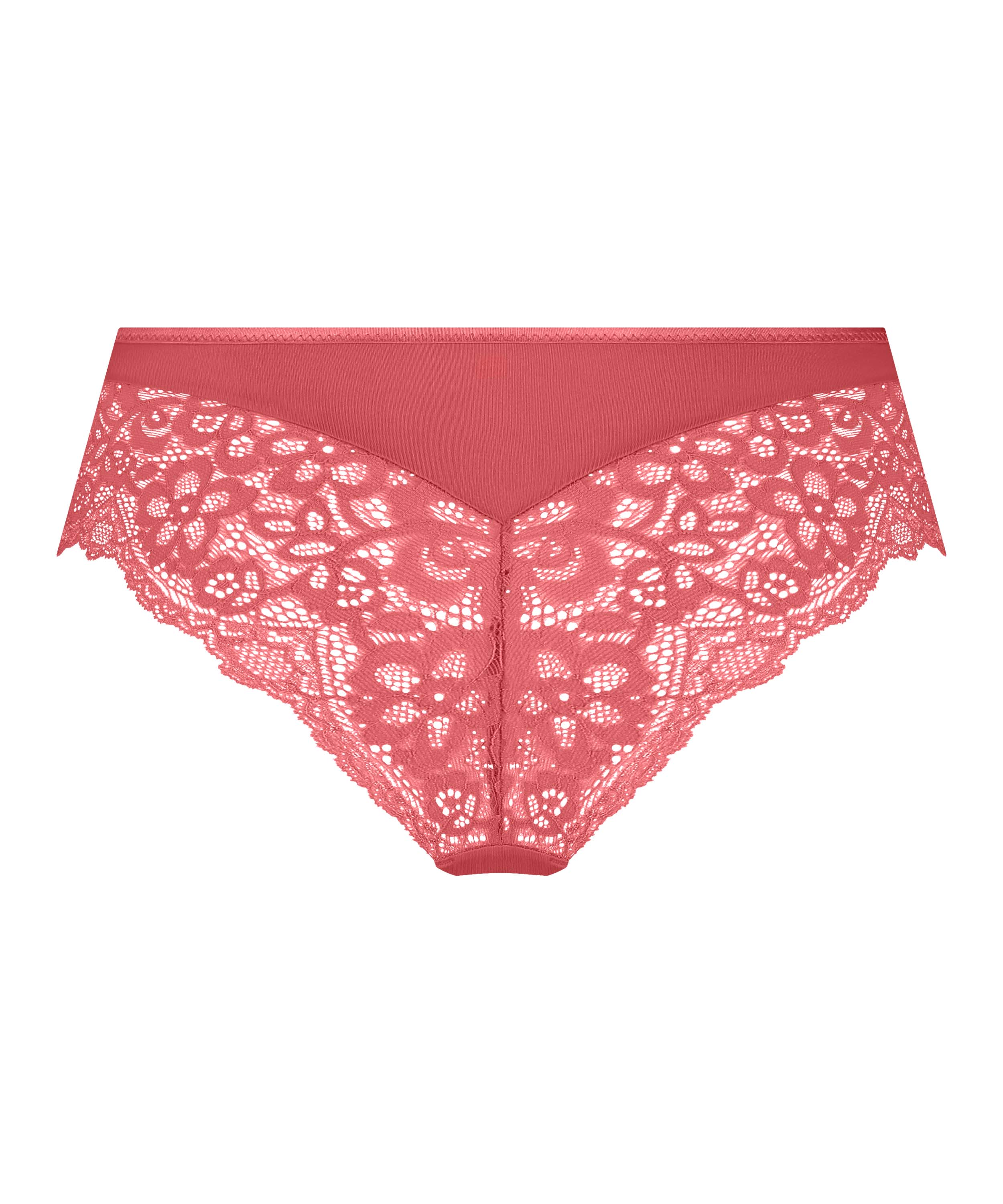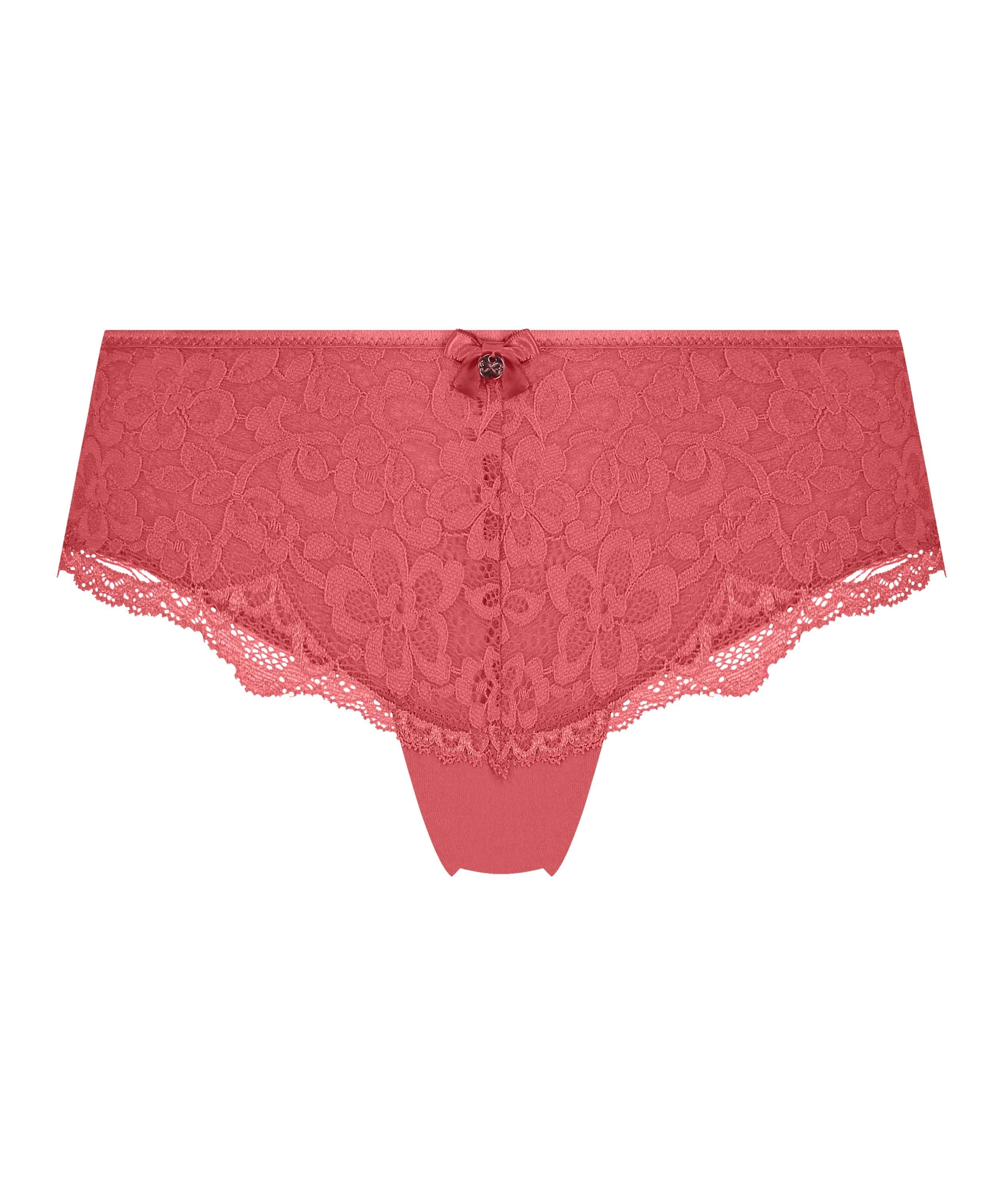 Disse brasilianske trusene er dekket med blonder for et supersexy utseende. En liten sløyfe i midten gir den siste finishen. Kombiner med den matchende bh-en for en komplett look.