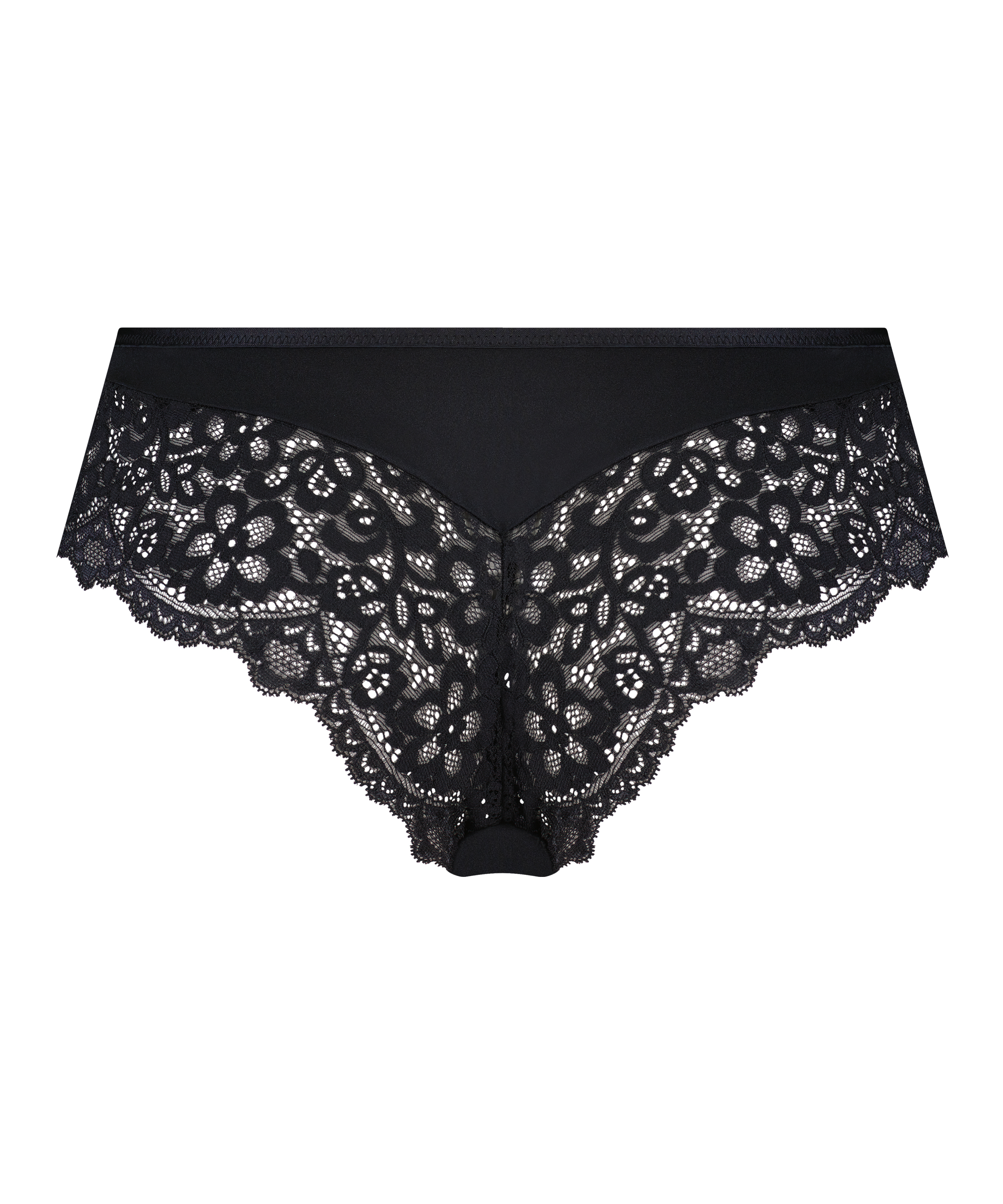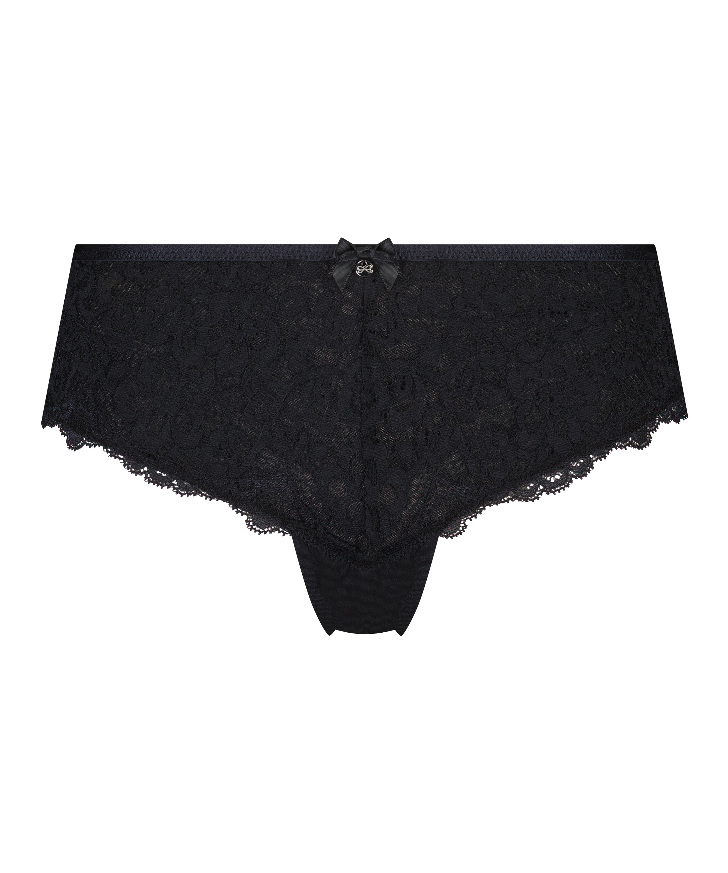 Disse brasilianske trusene er dekket med blonder for et supersexy utseende. En liten sløyfe i midten gir den siste finishen. Kombiner med den matchende bh-en for en komplett look.