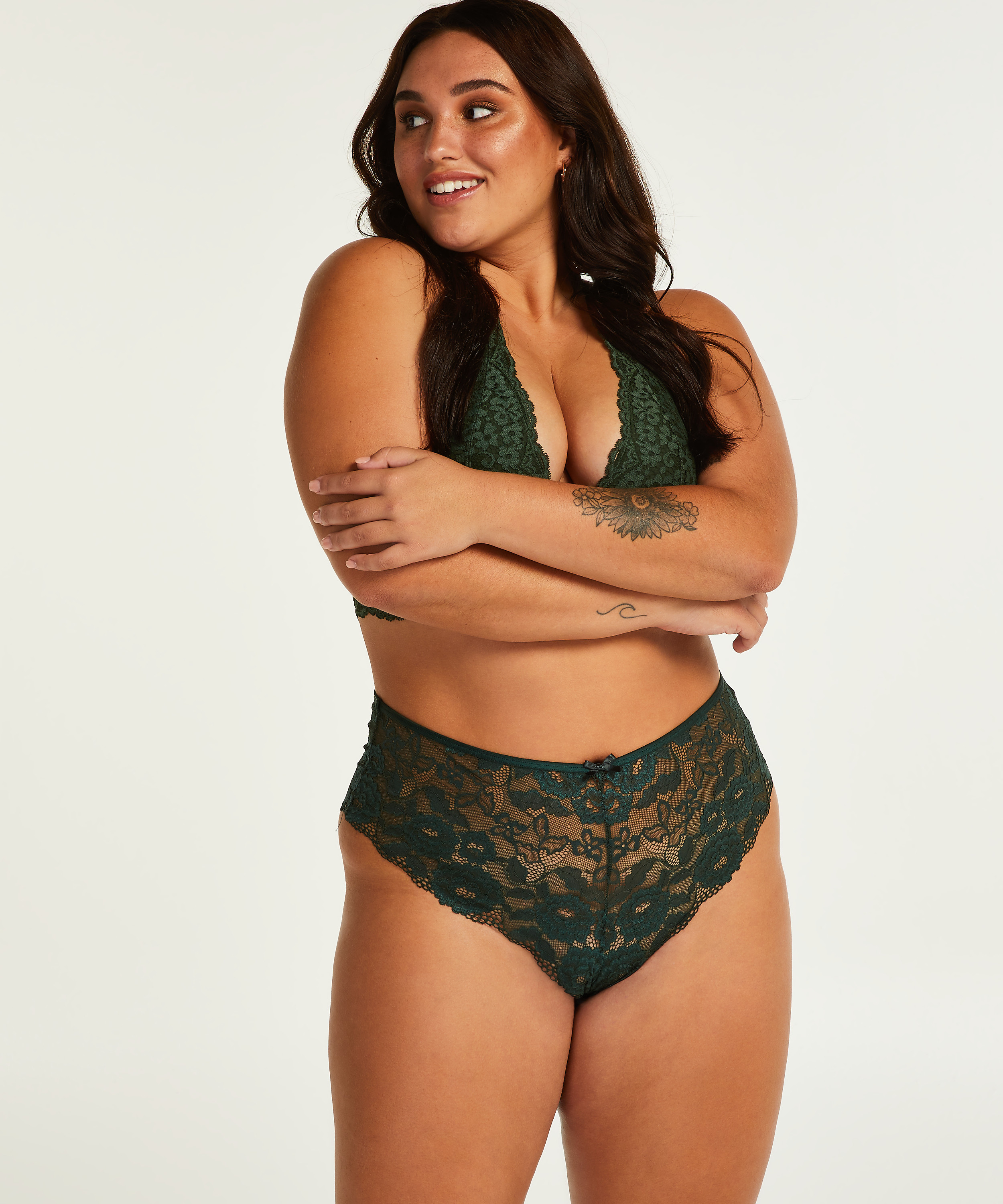 Denne brasilianske trusen er superlekker! Den er nesten fullt og helt av blonder og foran er det en søt, liten sløyfe. Denne stilen er laget spesielt for kroppstyper med praktfulle kurver for å favne om og støtte opp om kroppen på de rette stedene.