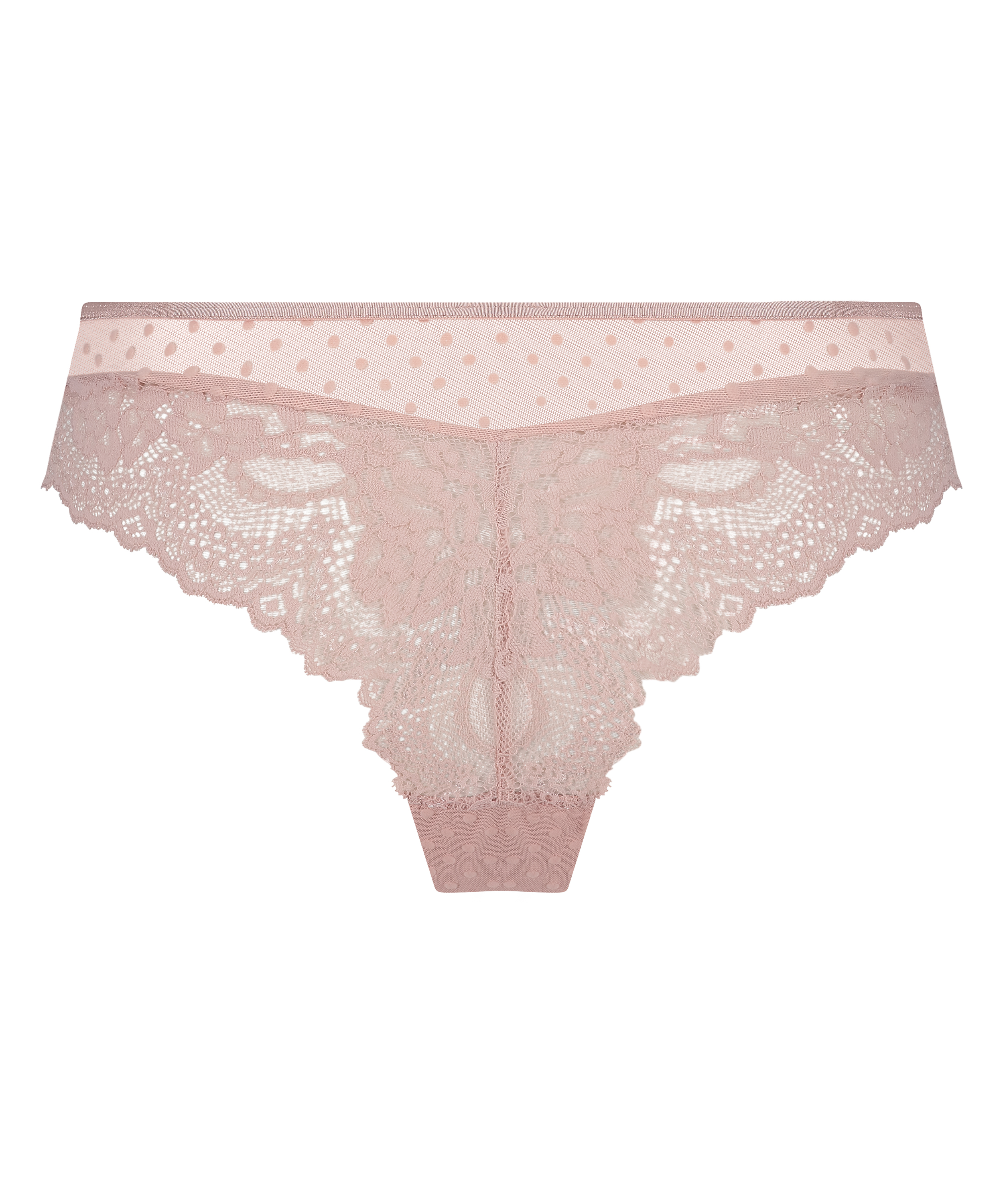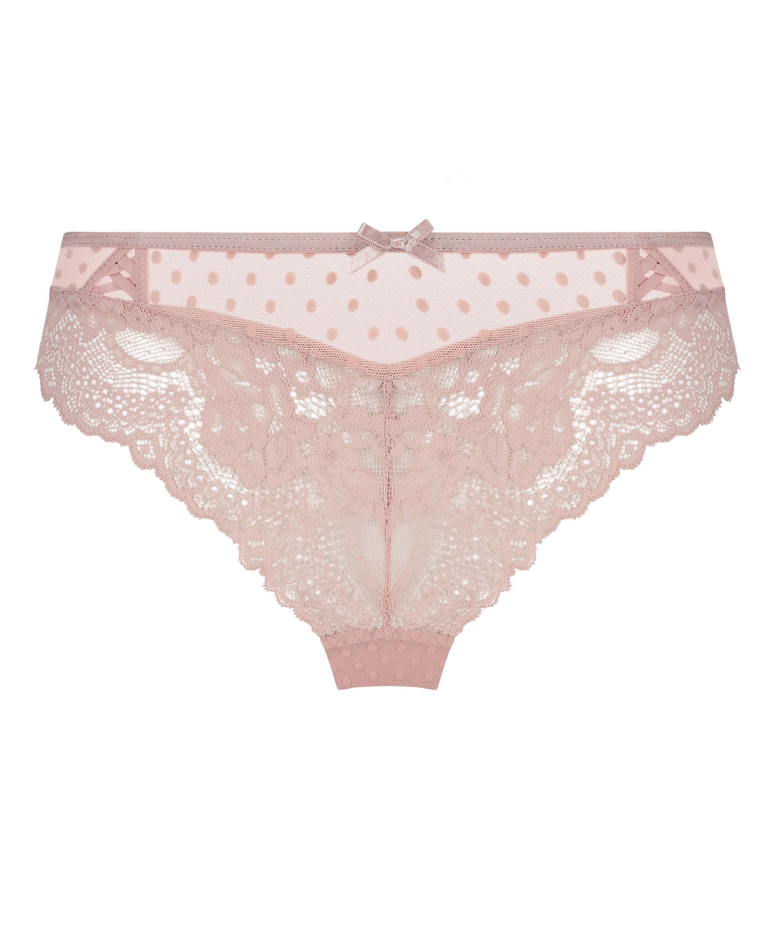 Hvor søt er ikke denne brasilianske trusen? Den er laget av både blonder og mesh og har en søt sløyfe foran. Kombiner med din favoritt-BH og du har et fint sett!