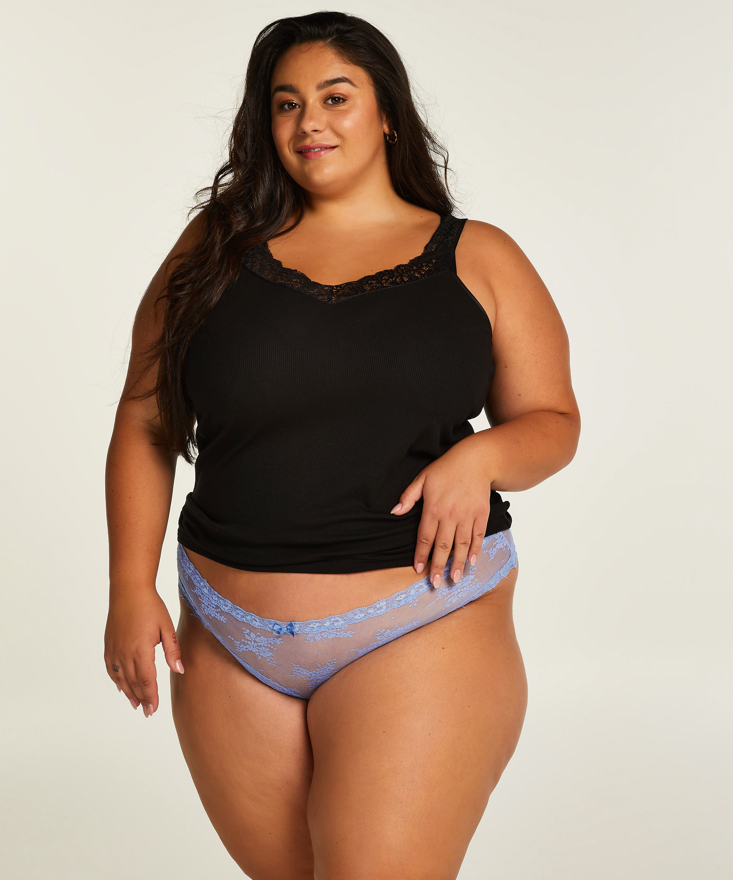 Denne veldig feminine brasilianske trusen er pyntet med en blonderand.